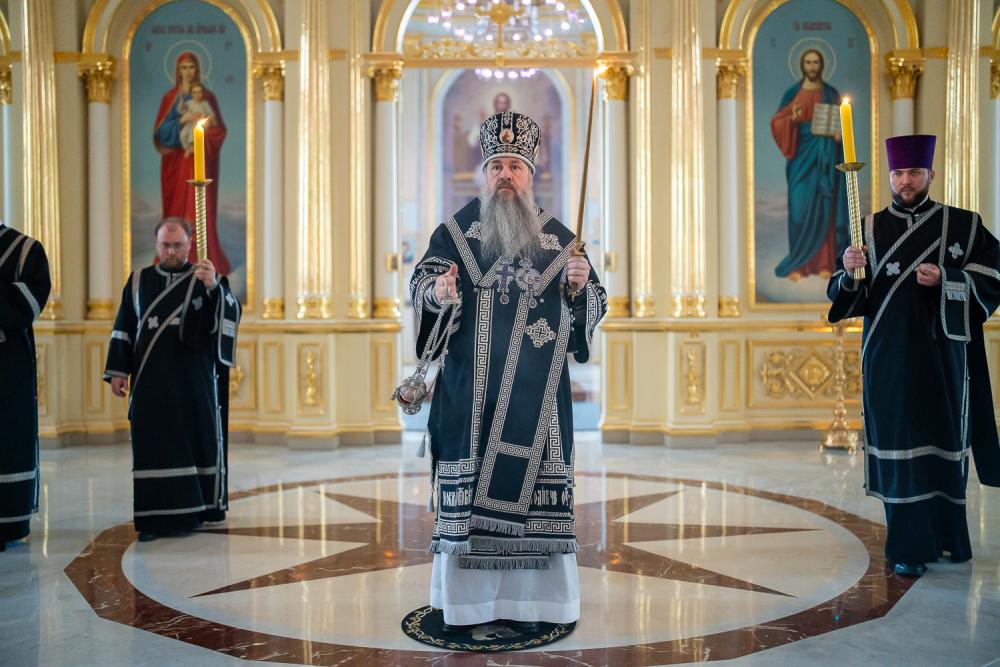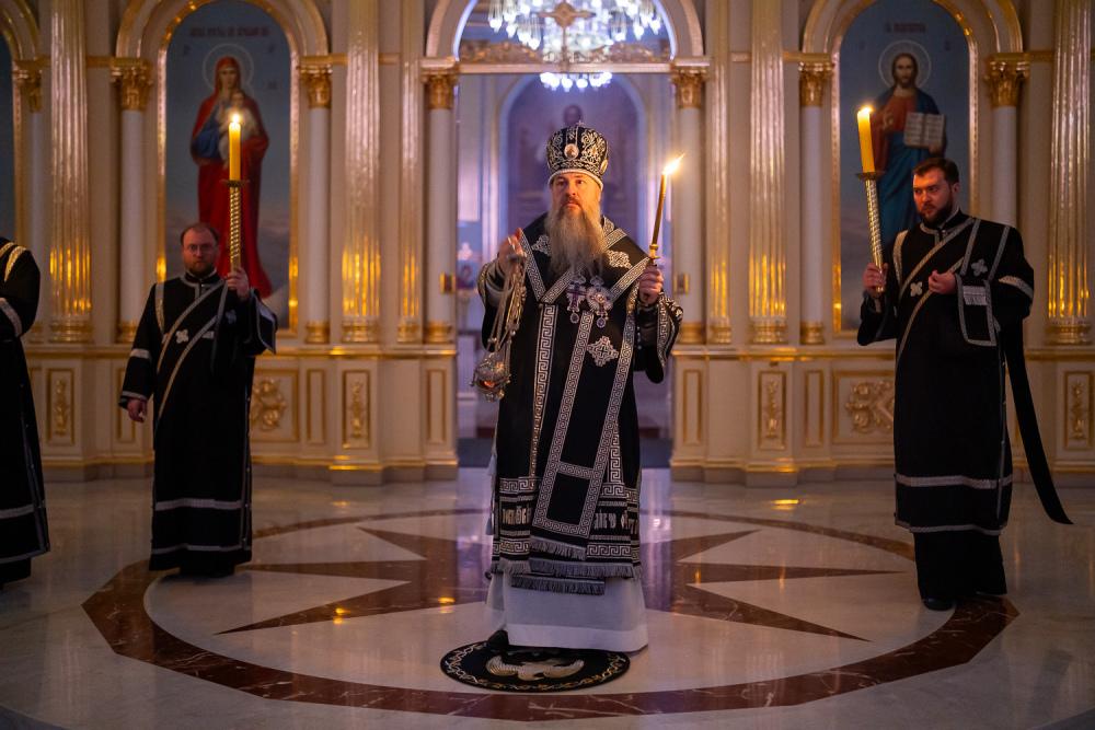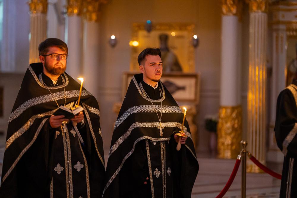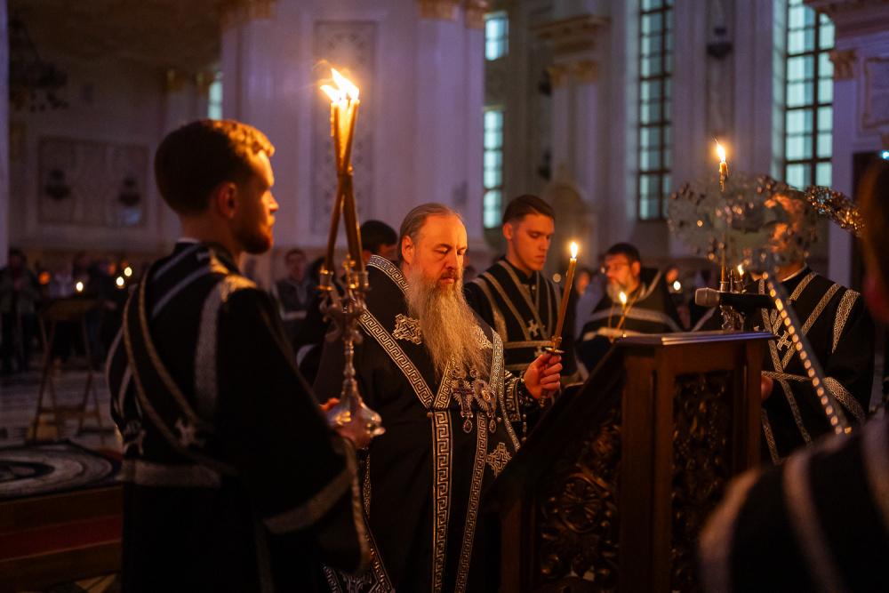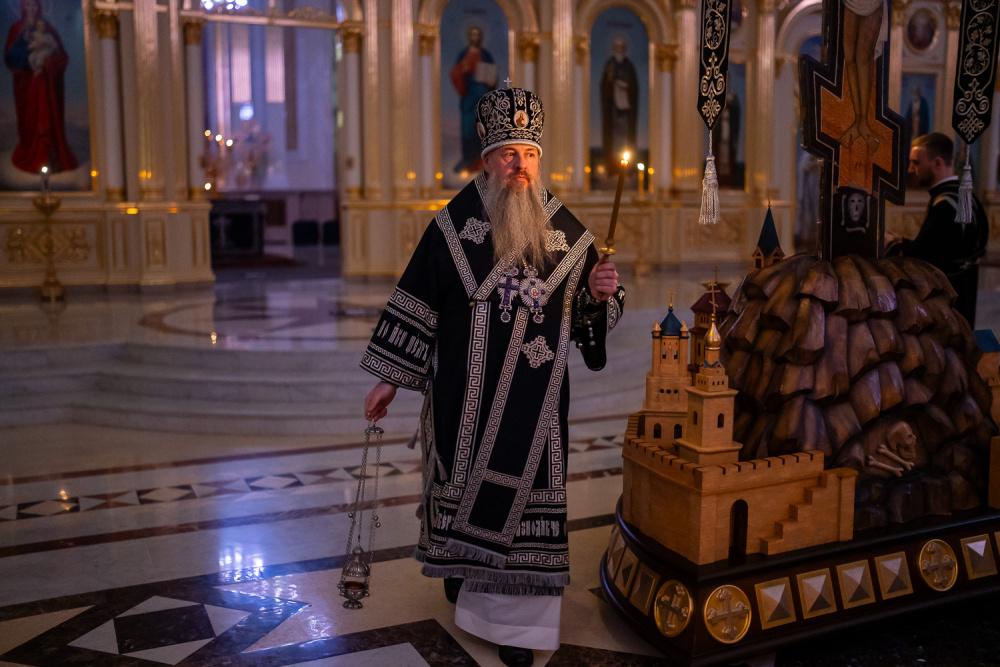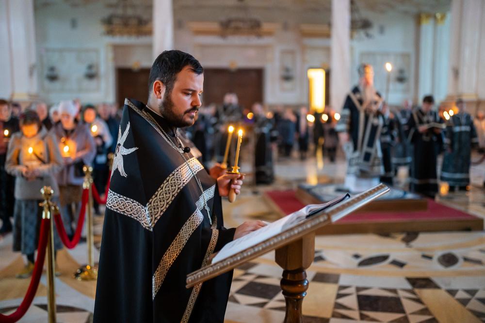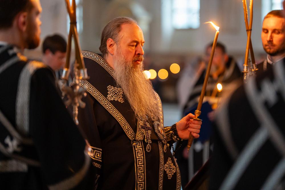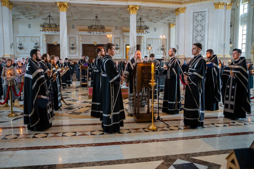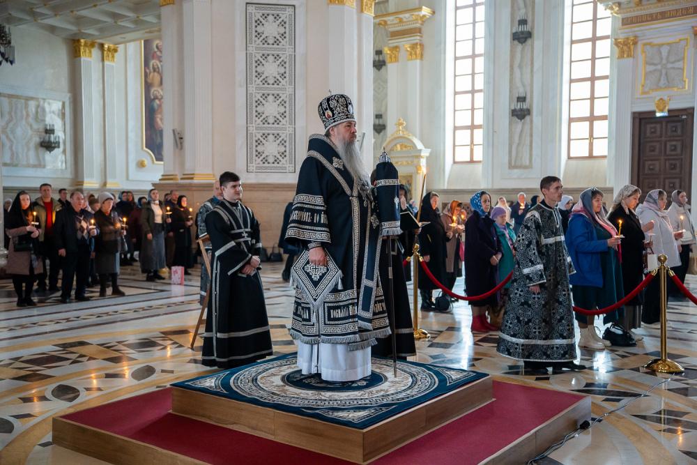 Митрополит Серафим совершил утреню с чтением 12-ти Евангелий Страстей Христовых в Спасском кафедральном соборе
