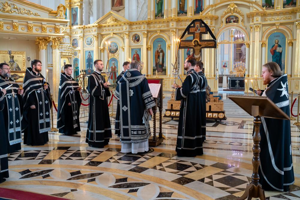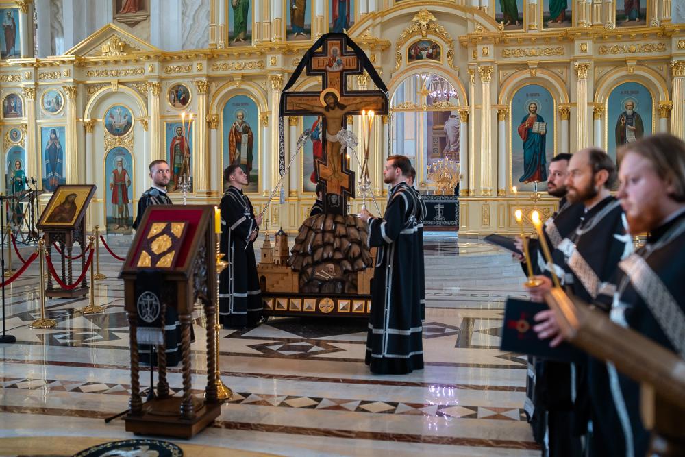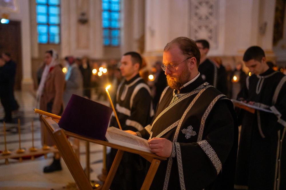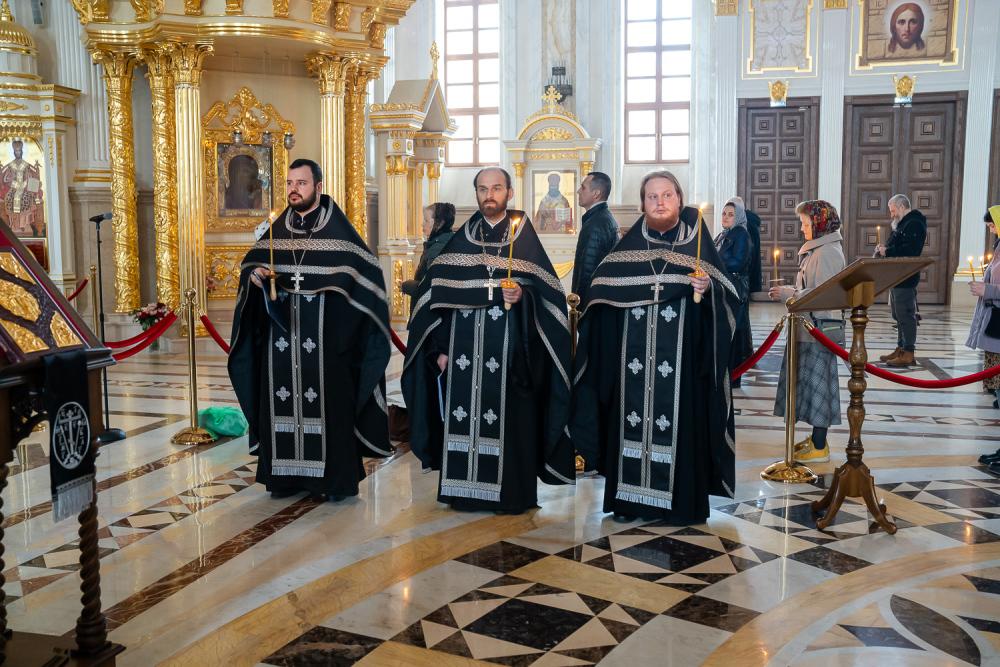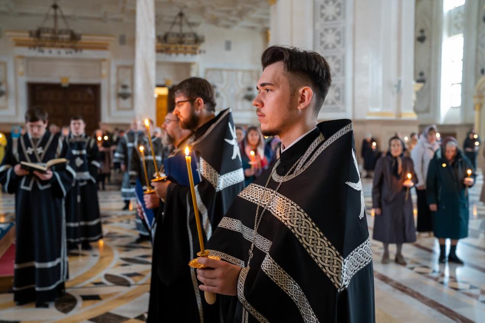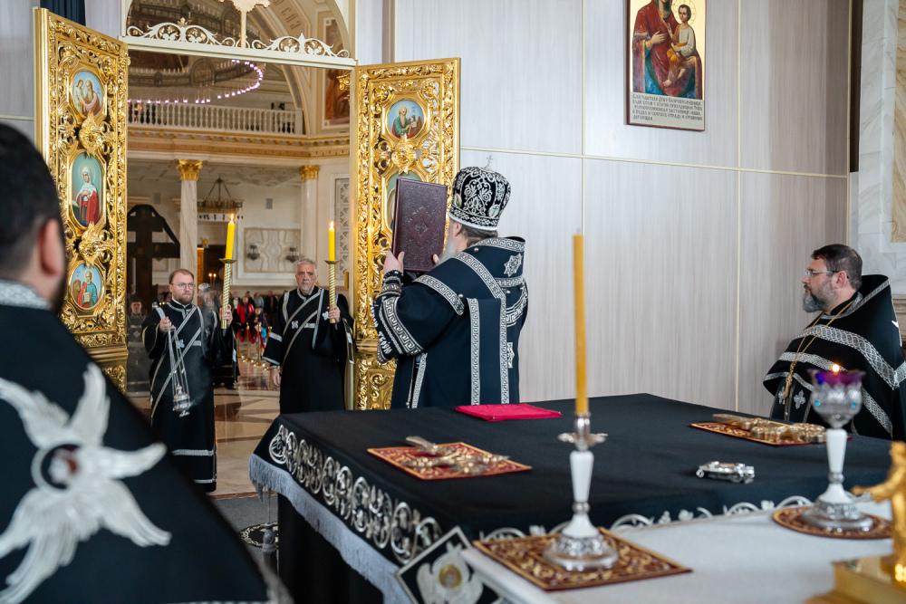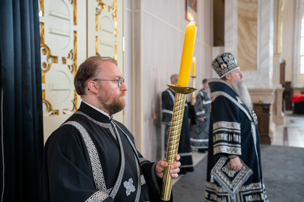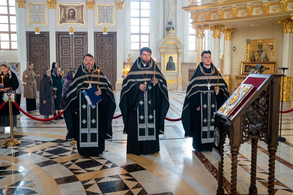 Митрополит Серафим совершил утреню с чтением 12-ти Евангелий Страстей Христовых в Спасском кафедральном соборе