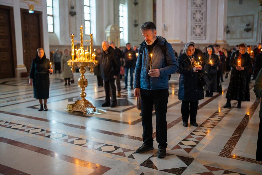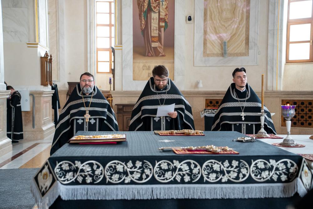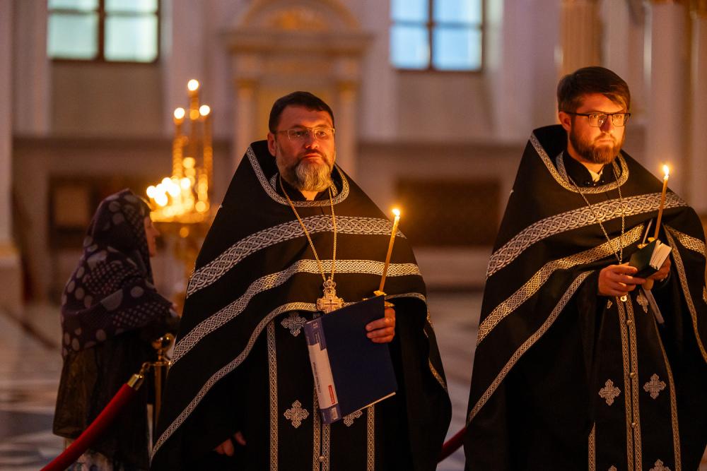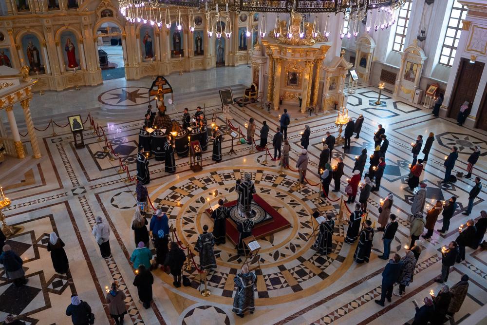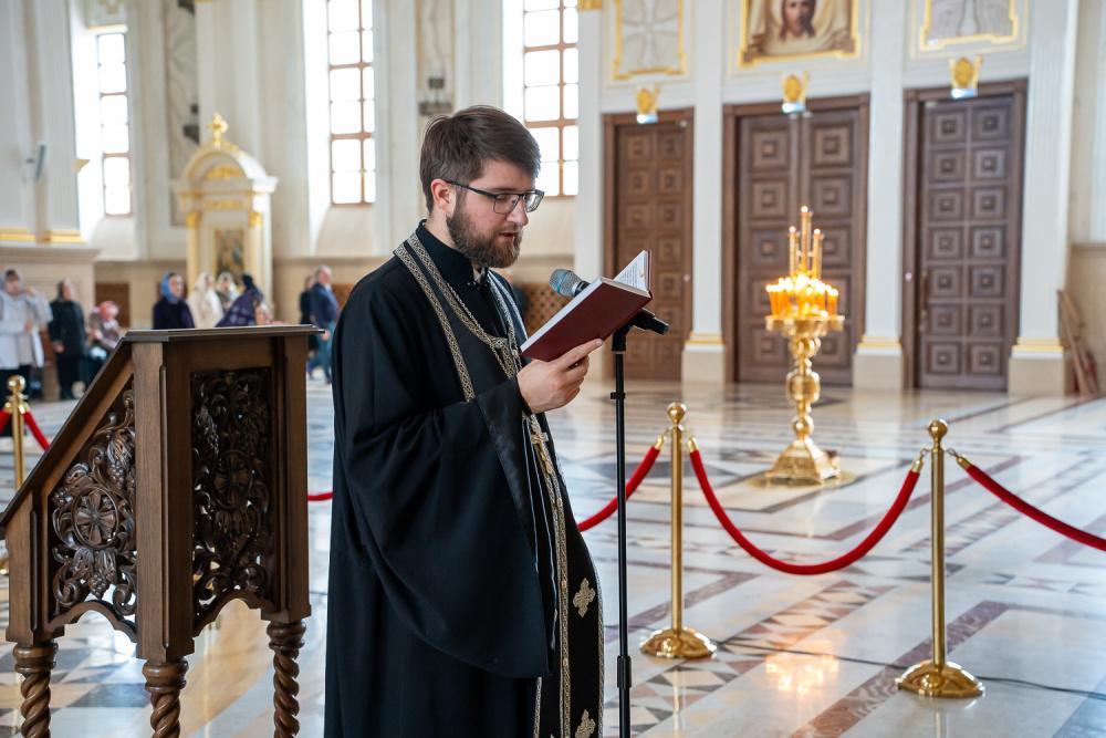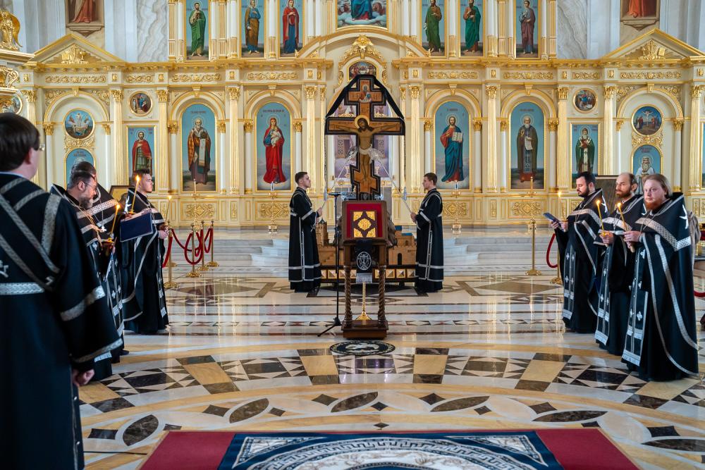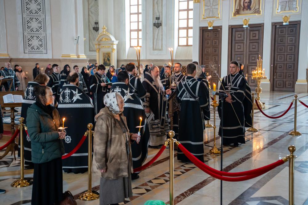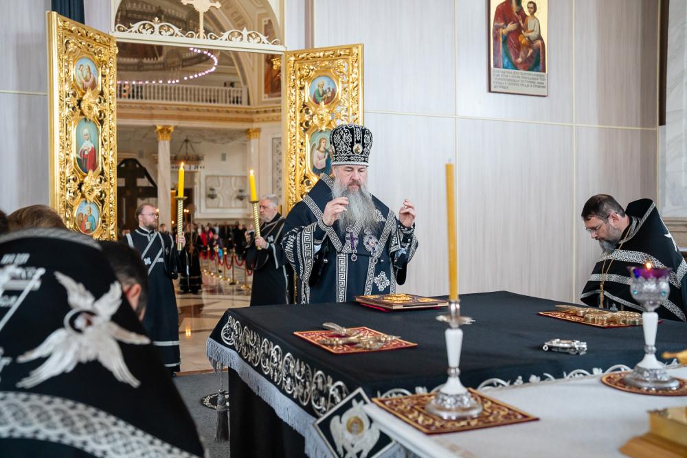 Митрополит Серафим совершил утреню с чтением 12-ти Евангелий Страстей Христовых в Спасском кафедральном соборе