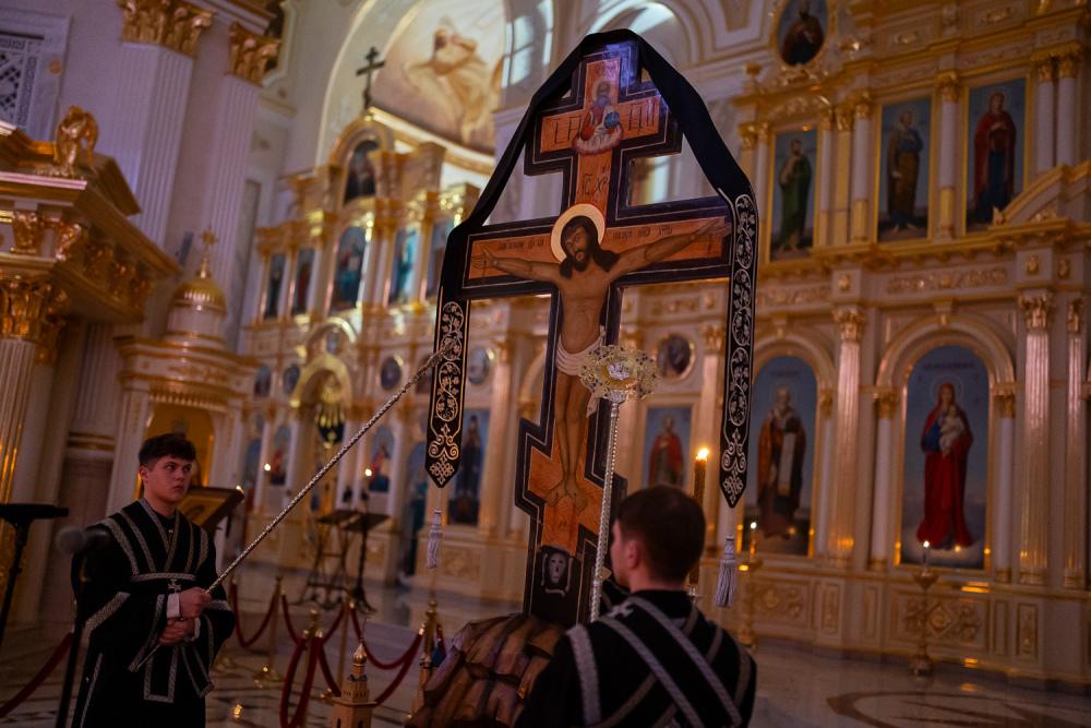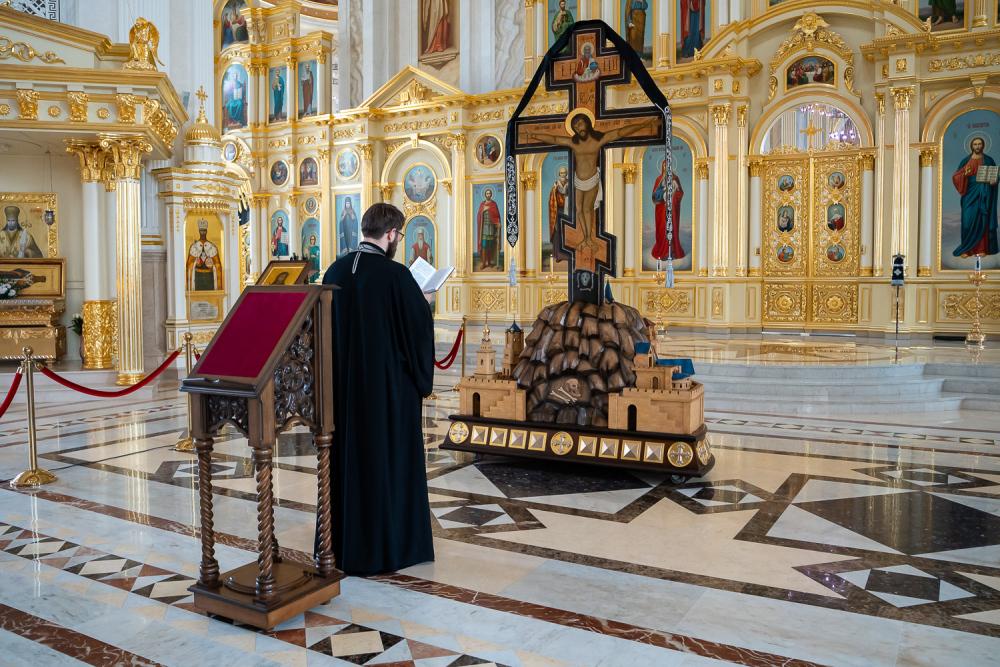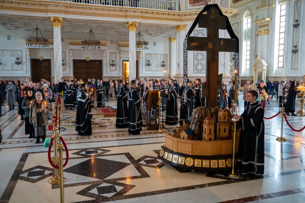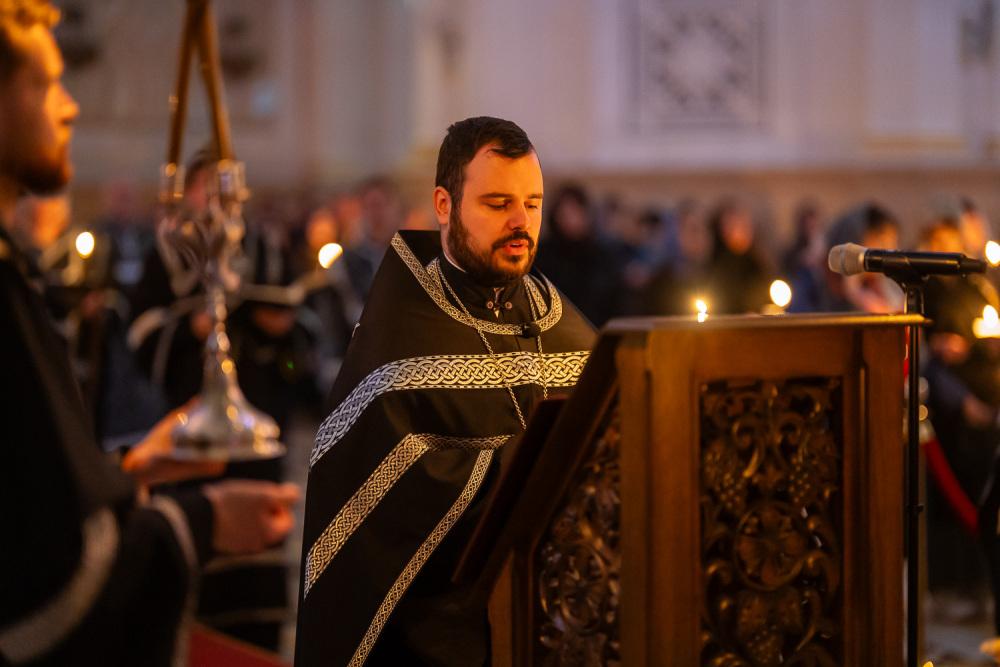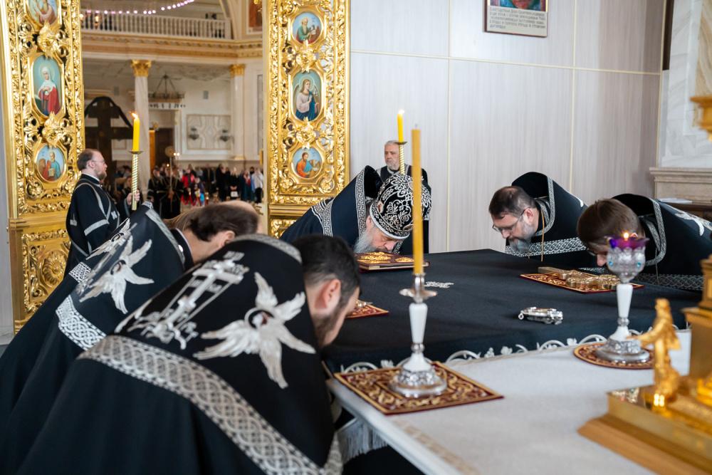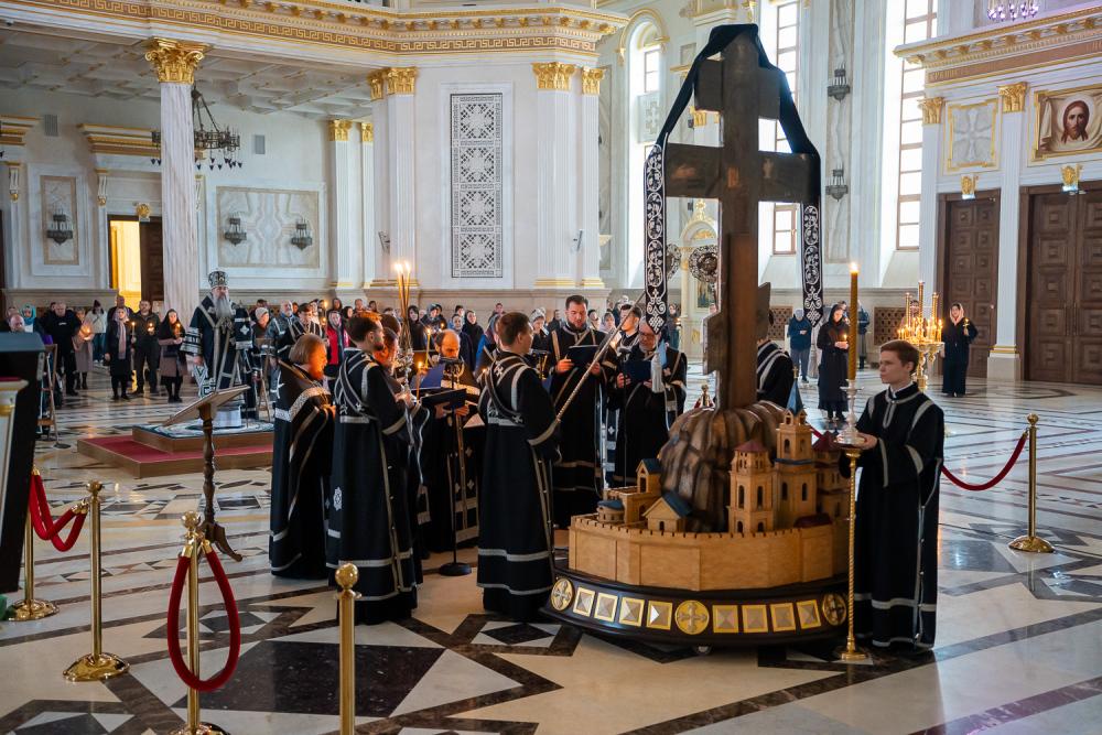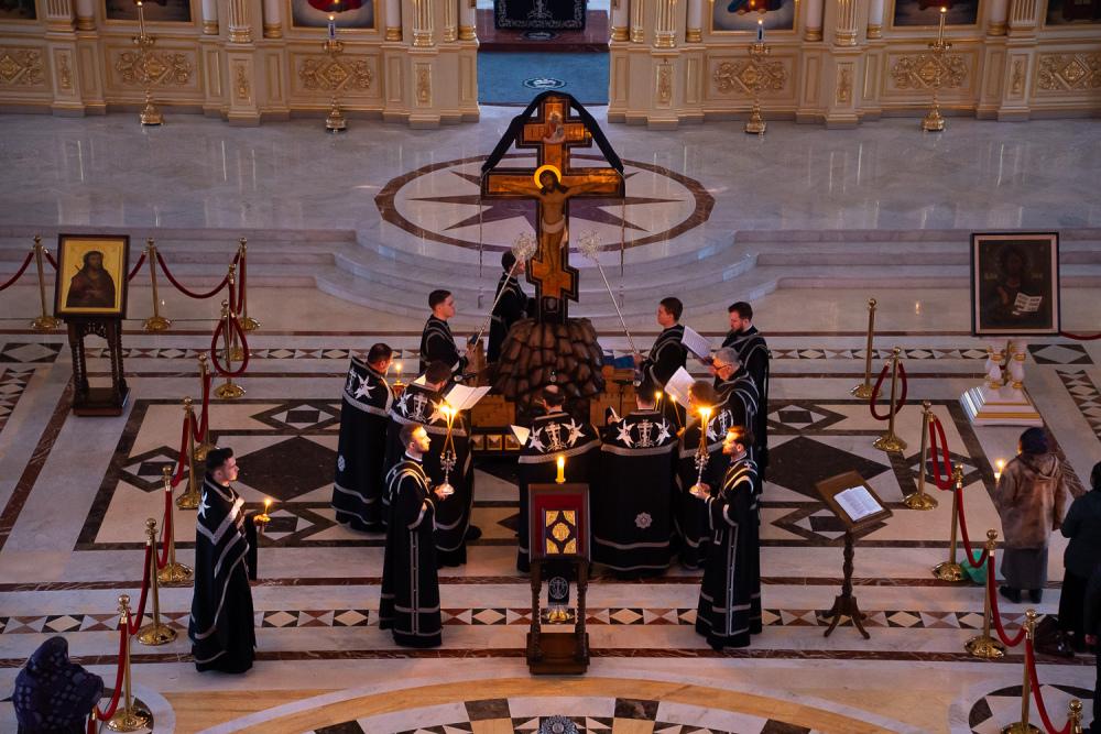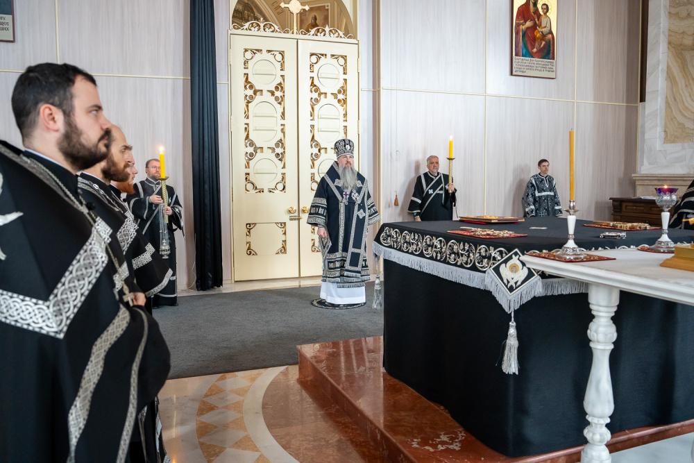 Митрополит Серафим совершил утреню с чтением 12-ти Евангелий Страстей Христовых в Спасском кафедральном соборе