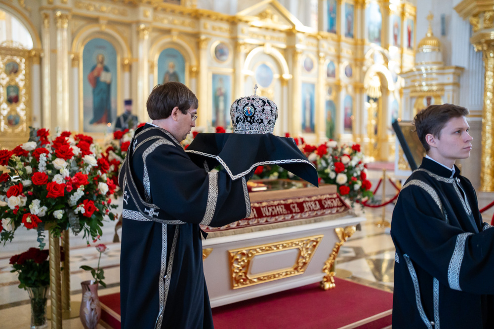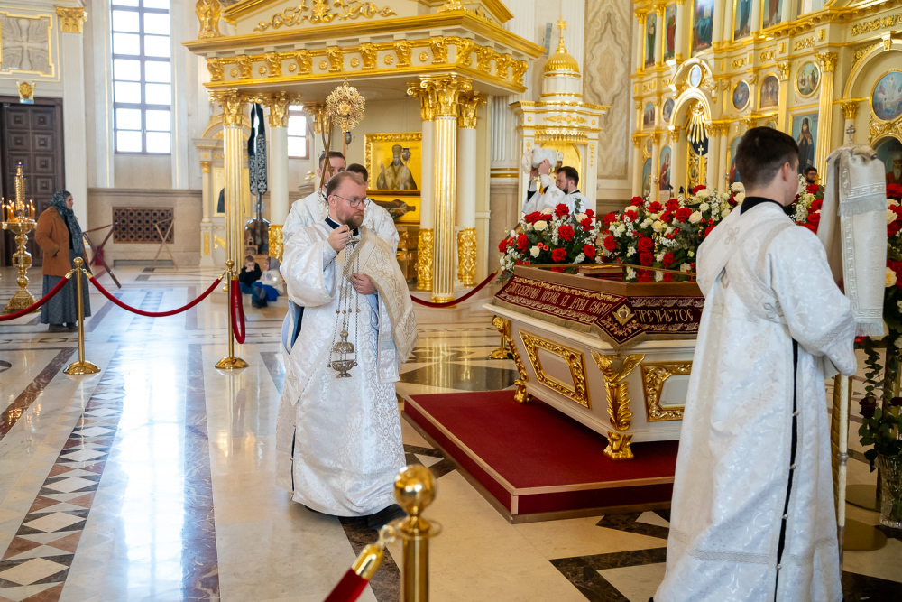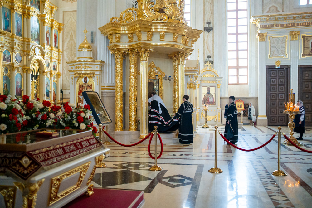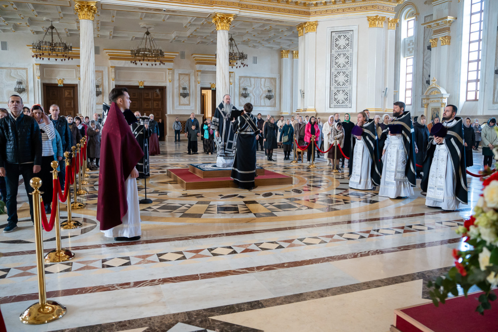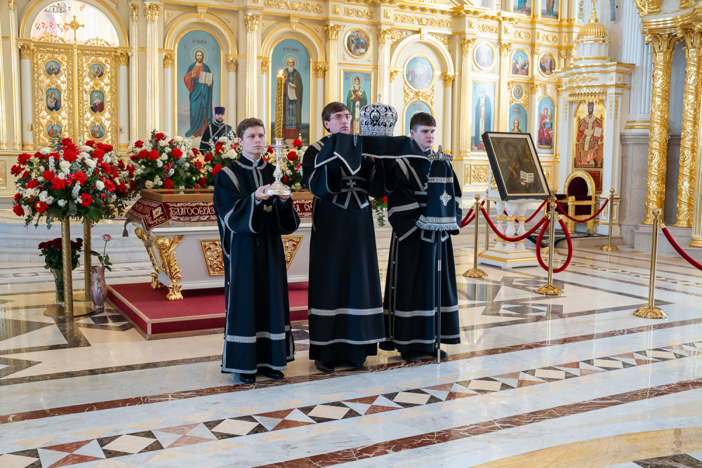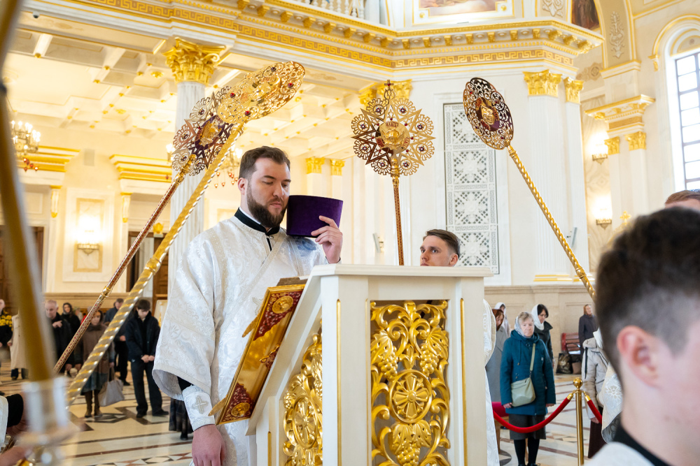 Богослужебные песнопения исполнил хор Спасского кафедрального собора под управлением регента Ольги Горшеневой.