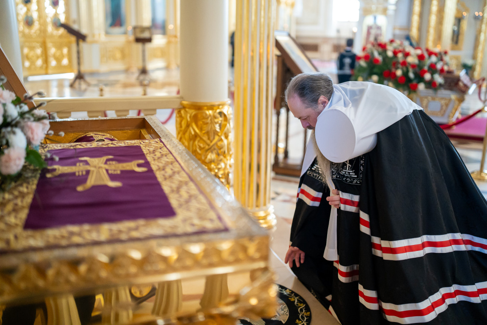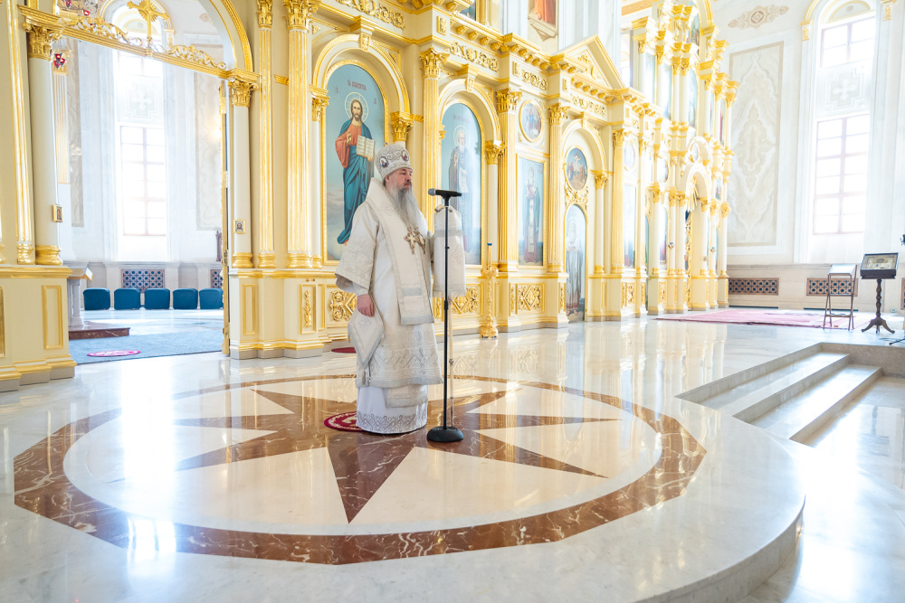 По окончании богослужения Высокопреосвященный владыка поздравил паству с Великой Субботой: «Когда именно воскрес Христос, сколько Он находился во гробе — это великая тайна. Первые сведения о том, что Христос отсутствует во гробе, принесли жены-мироносицы, спешившие ко гробу с ароматами, чтобы закончить умащения, однако они нашли гроб пустым. Уже потом Господь явился ученикам, возвестил о Своем Воскресении и показал Свою Плоть.
