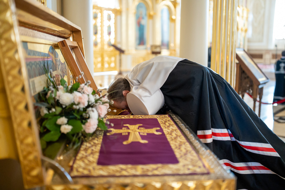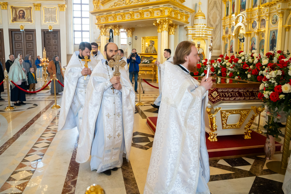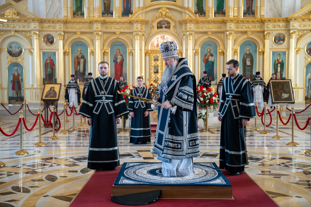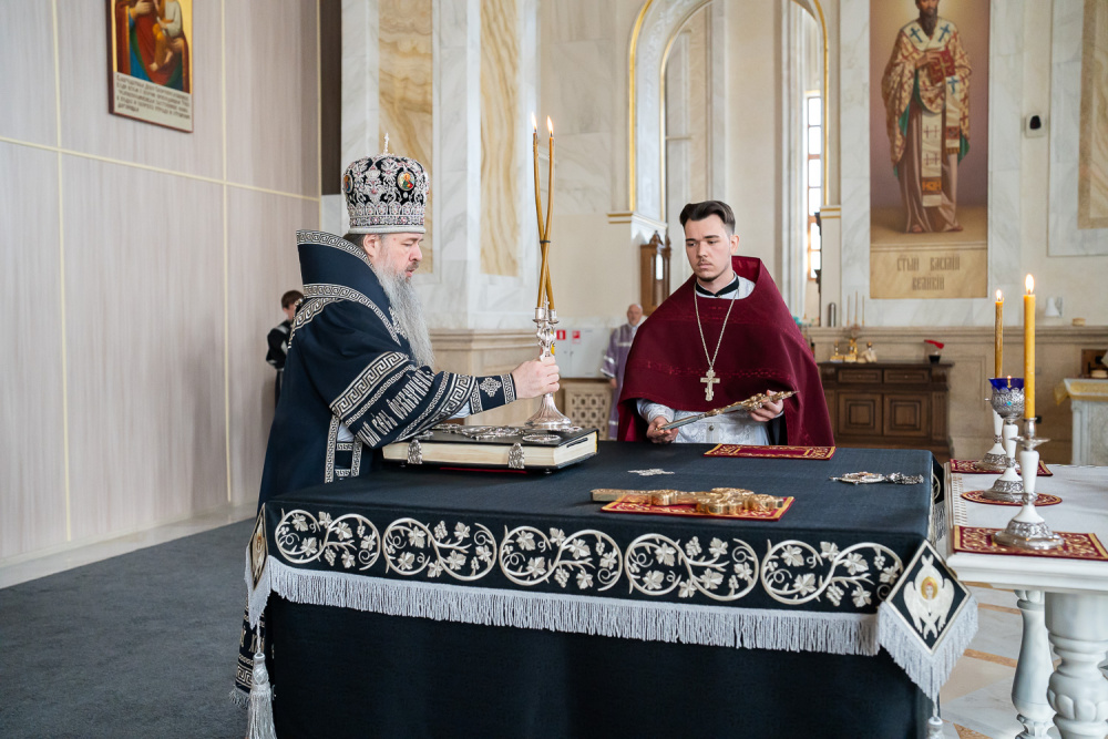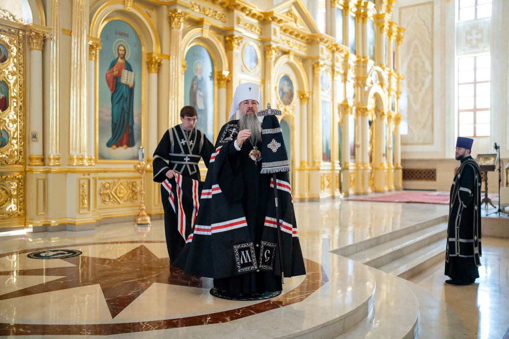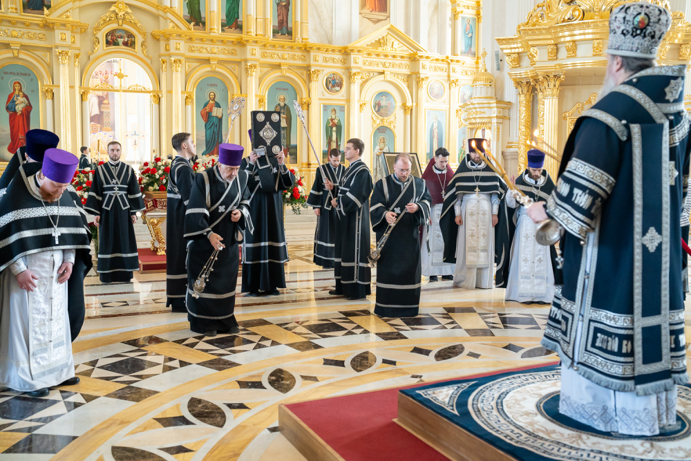 В Великую Субботу митрополит Серафим совершил литургию святителя Василия Великого в Спасском кафедральном соборе