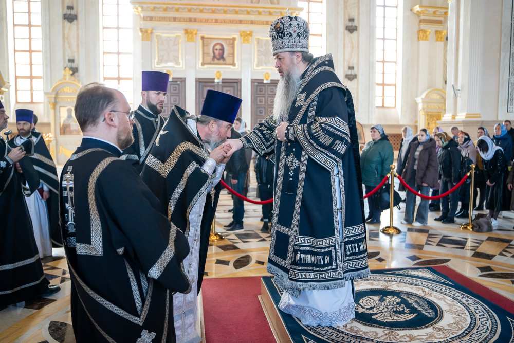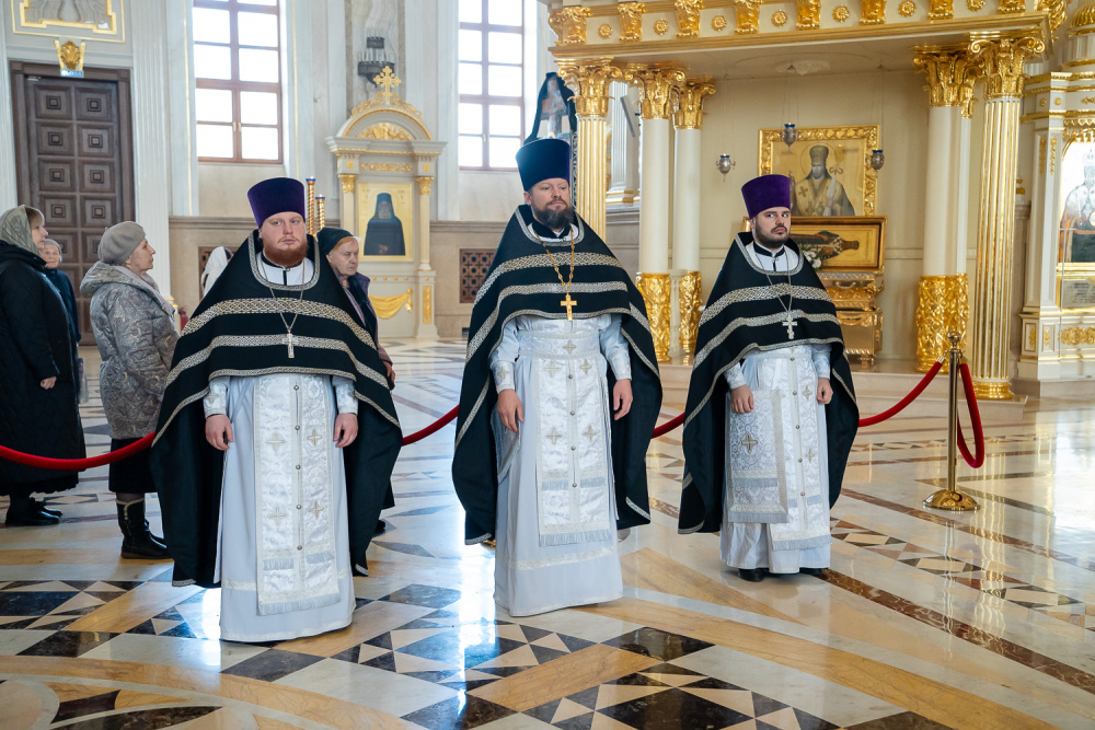 Его Высокопреосвященству сослужили секретарь Пензенской епархии протоиерей Павел Матюшечкин, ключарь Спасского кафедрального собора иерей Николай Батищев, протоиерей Владимир Ольхов, иереи Сергий Иванов, Евгений Климчев, Георгий Насонов и Никита Черных, диаконы Богдан Яворский, Кирилл Вейго и Иоанн Сидоров.