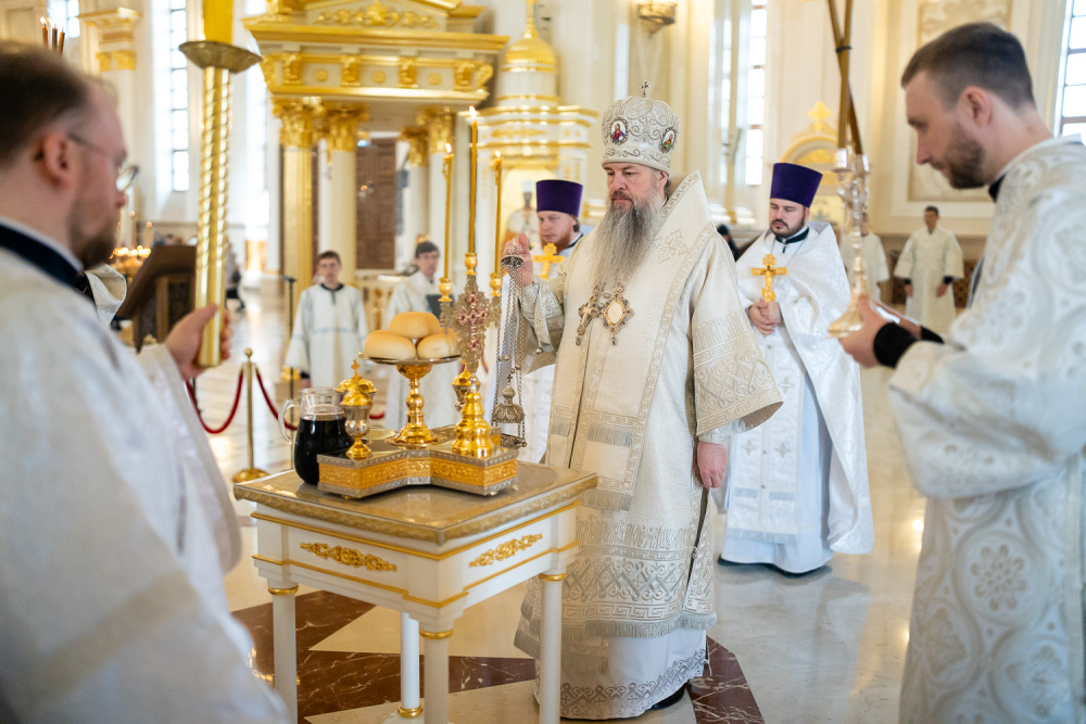 По отпусте литургии глава Пензенской митрополии совершил освящение хлеба и вина.