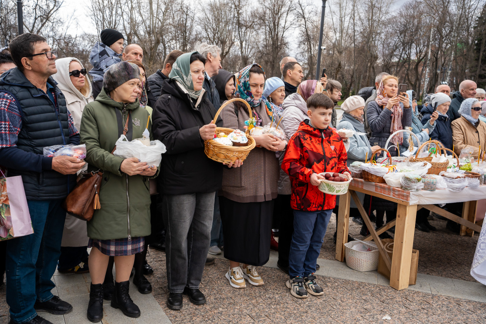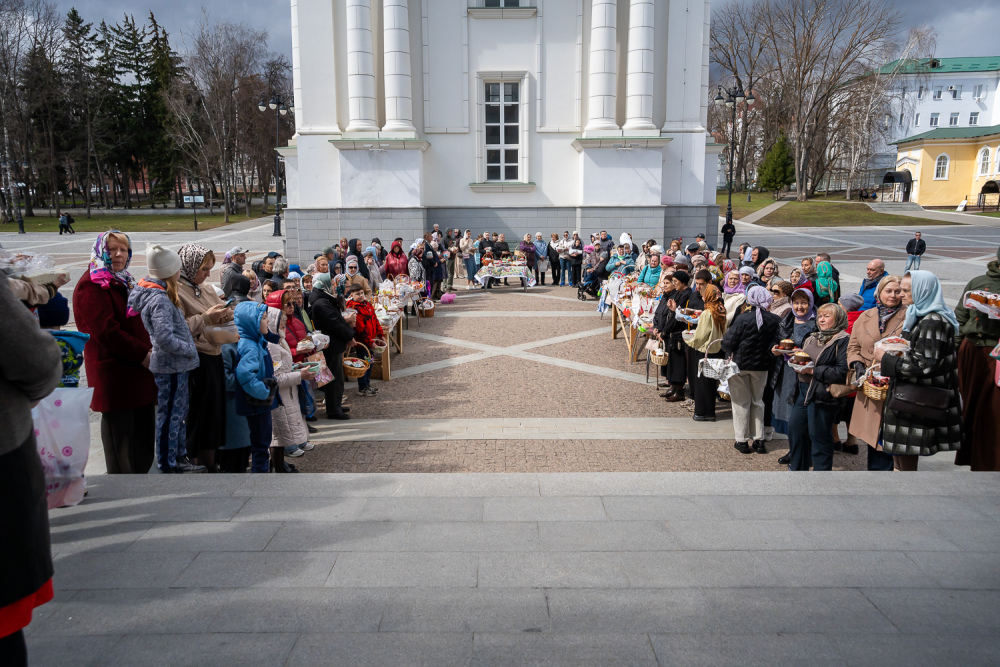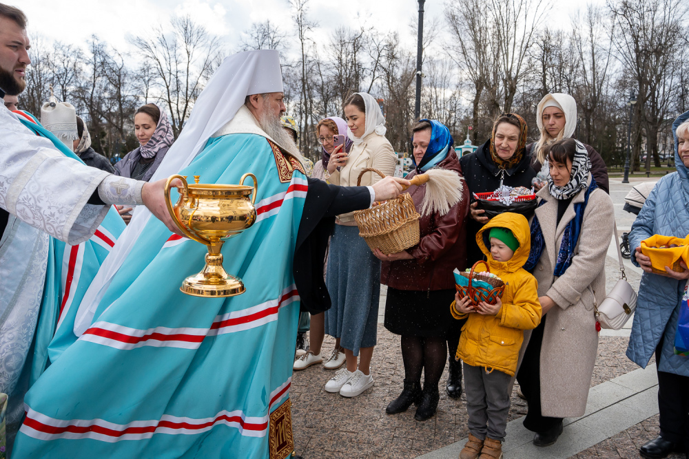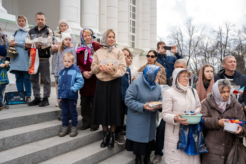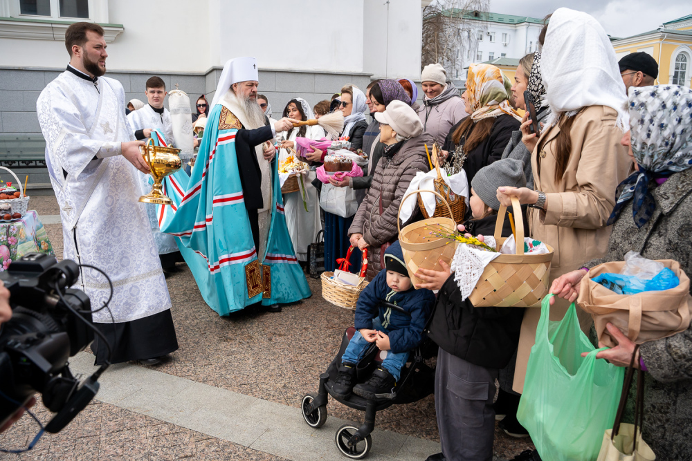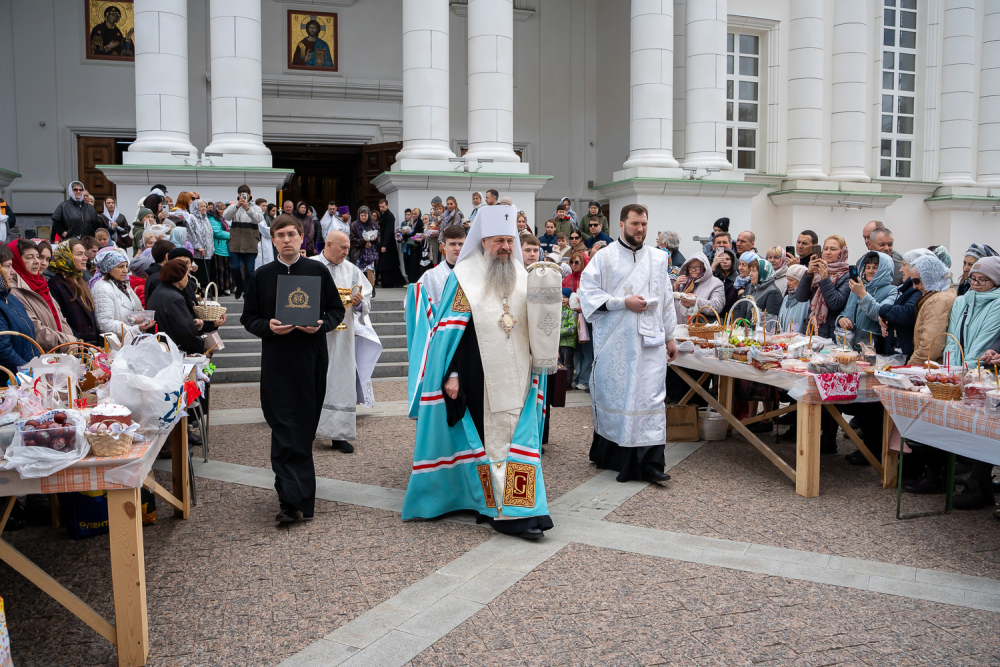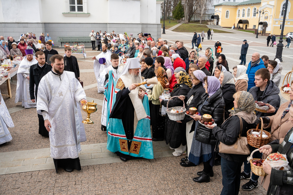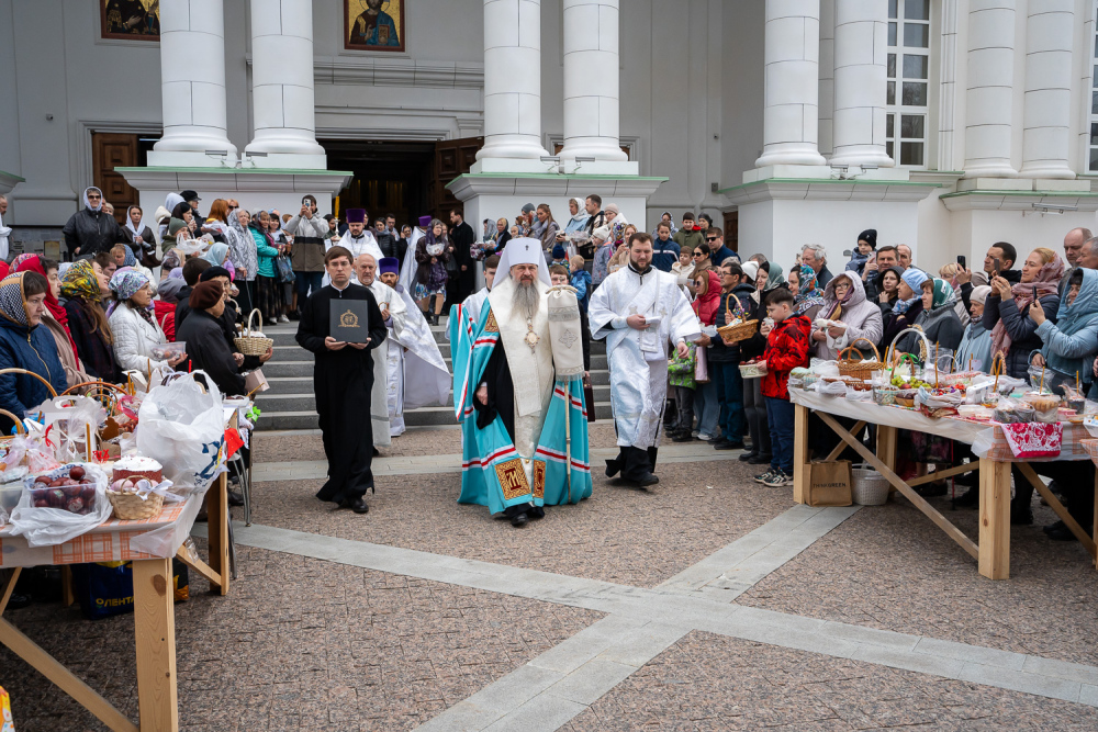 После этого правящий архипастырь совершил освящение яиц, куличей и пасок.