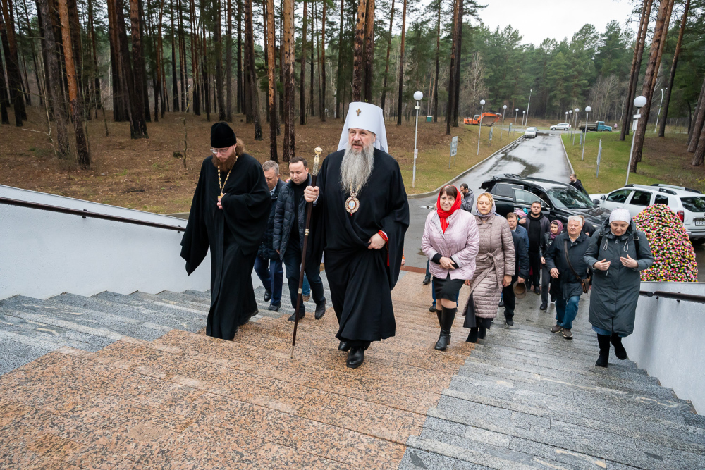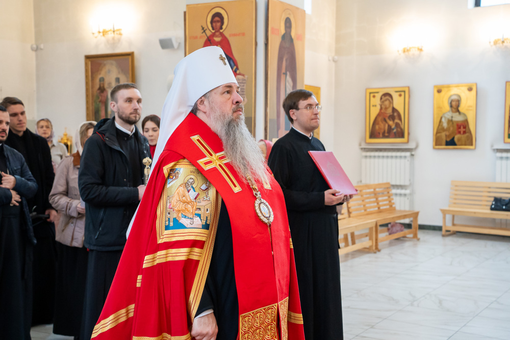 По окончании богослужения Высокопреосвященный митрополит Серафим посетил храм преподобного Серафима Саровского г. Заречный, где совершил молебен на начало всякого доброго дела.