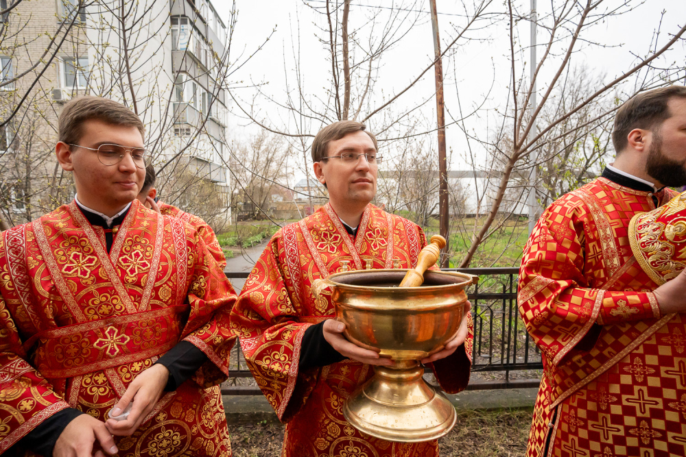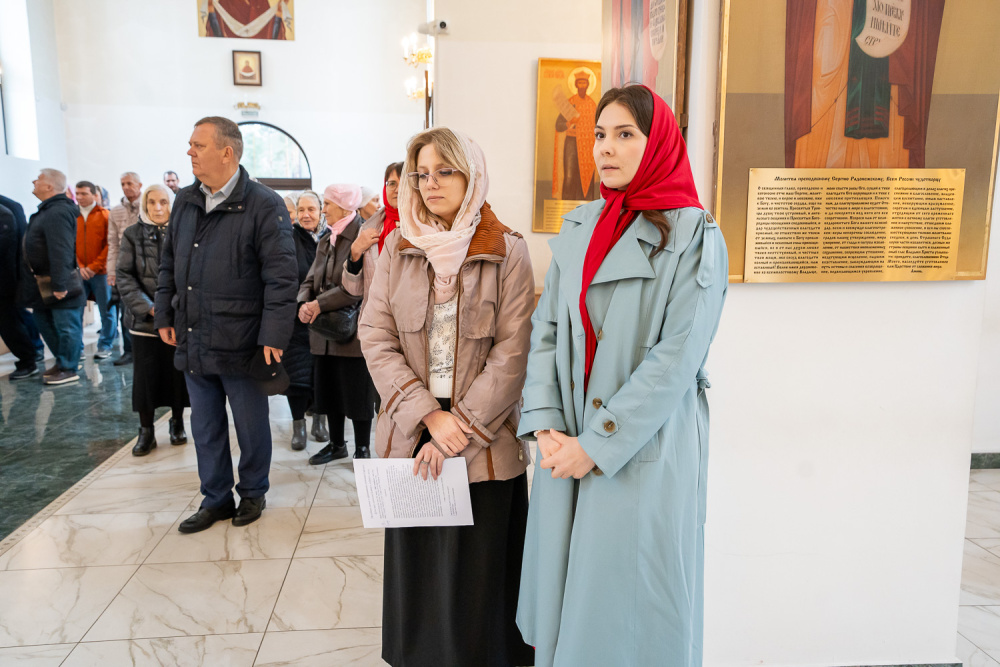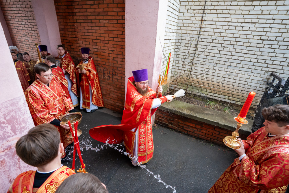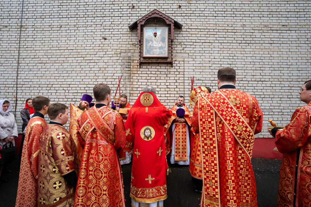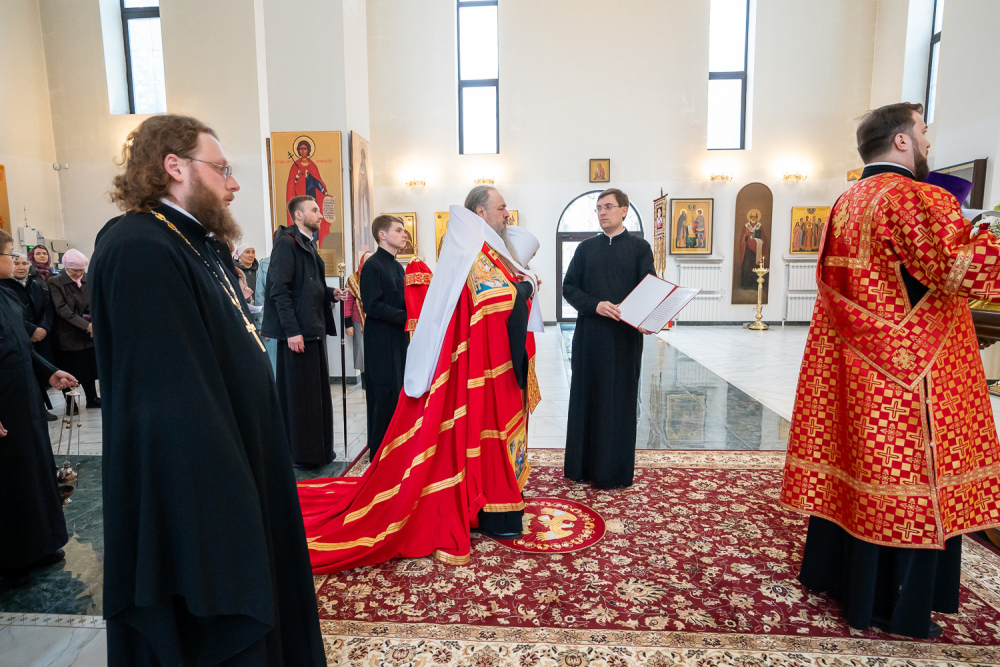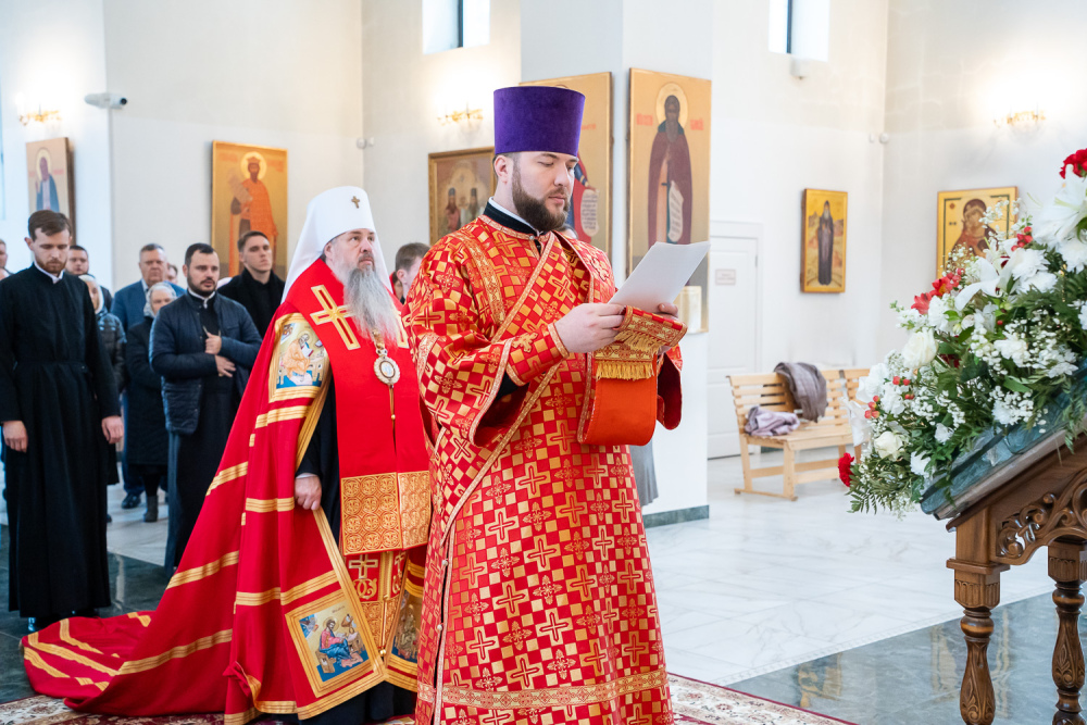 Высокопреосвященный владыка Серафим обратился к присутствующим: «Мы собрались здесь сегодня для того, чтобы помолиться Богу о начале добрых дел, которые мы будем совершать. Это роспись храма, которая начнется в ближайшее время, и благоустройство всей прилегающей территории общей площадью 5,5 гектар, которое уже началось. И я надеюсь, что нашими с вами молитвами Господь поможет нам без каких-либо особых препятствий, без искушений совершить эти добрые дела. Давайте помолимся, чтобы Господь укрепил вех нас на совершение этого доброго дела и помог в том, чтобы совершить всё это качественно и быстро».