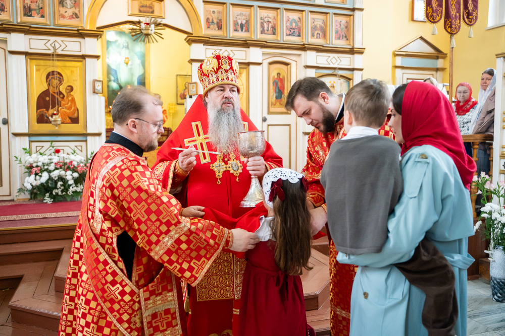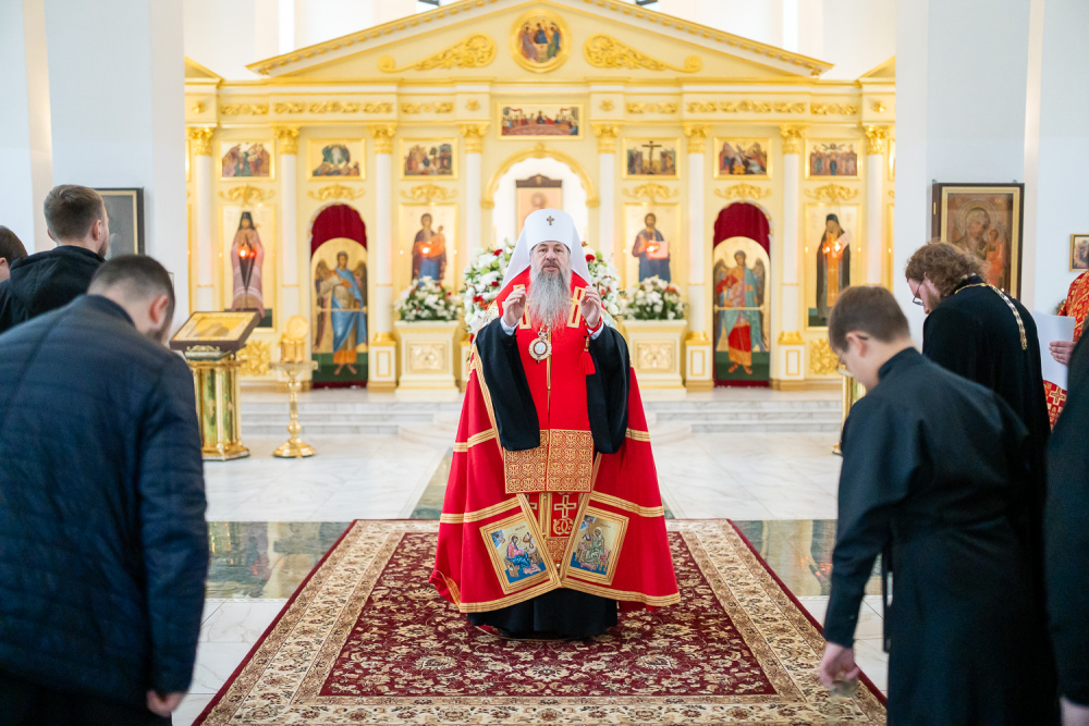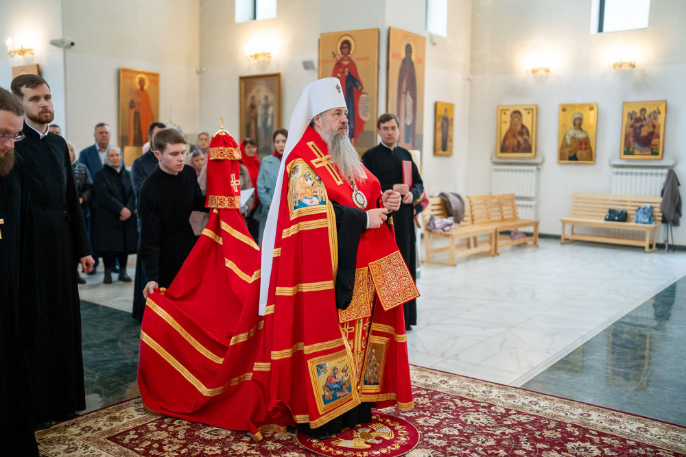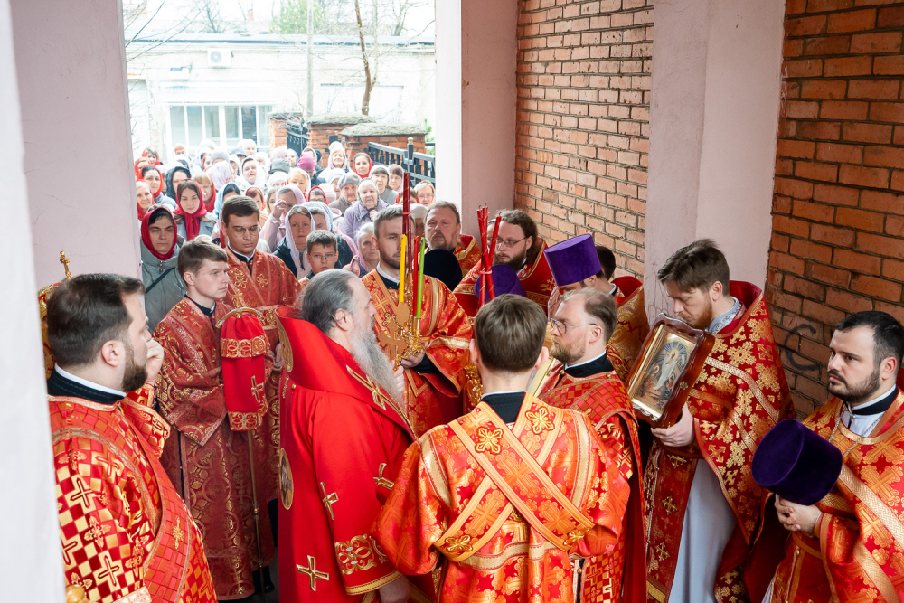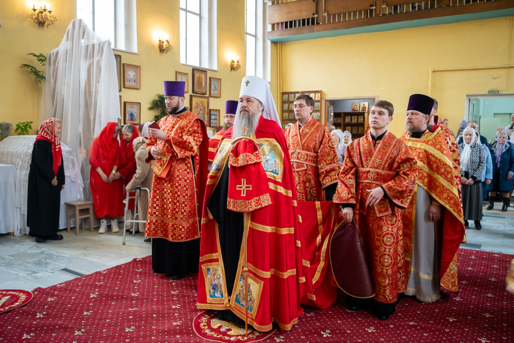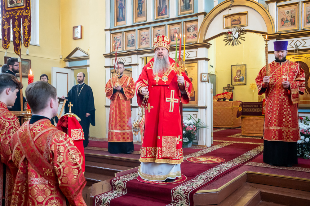 14 апреля 2026 года, во вторник Светлой седмицы, в день чествования Иверской иконы Божией Матери, митрополит Пензенский и Нижнеломовский Серафим совершил Божественную литургию в храме Воскресения Христова города Заречного.