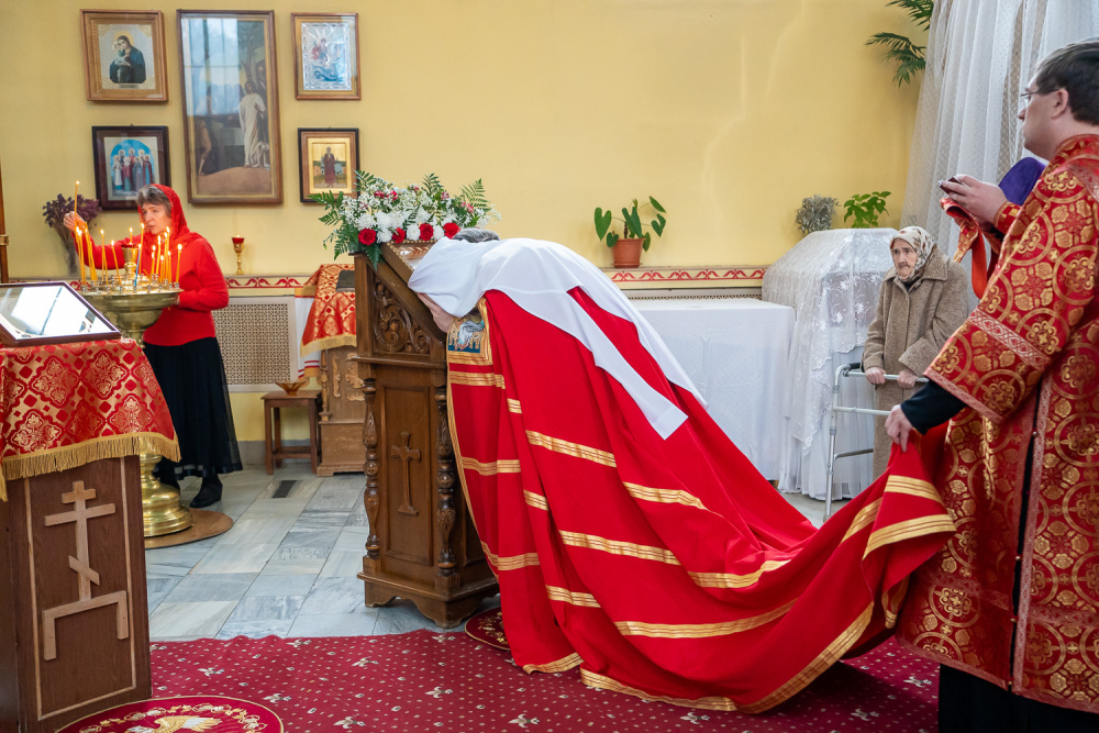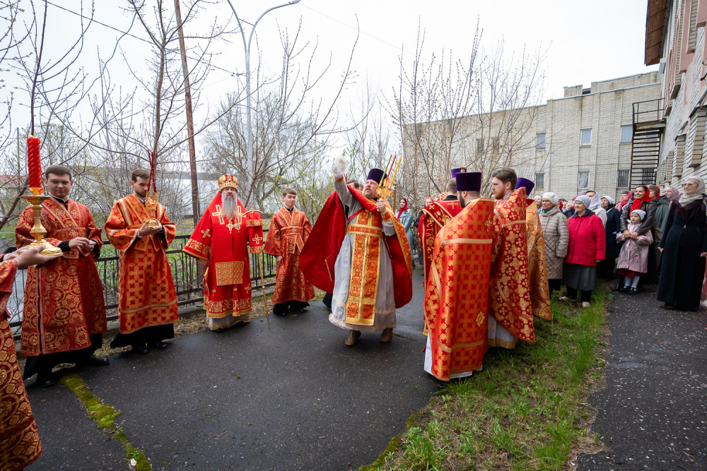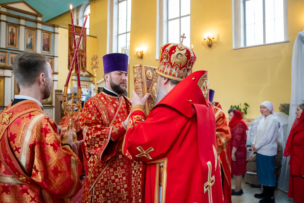 В завершение богослужения настоятель Воскресенского храма иерей Виктор Сторожев поздравил правящего архиерея с Воскресением Христовым и поблагодарил за архипастырский визит и совместную молитву.