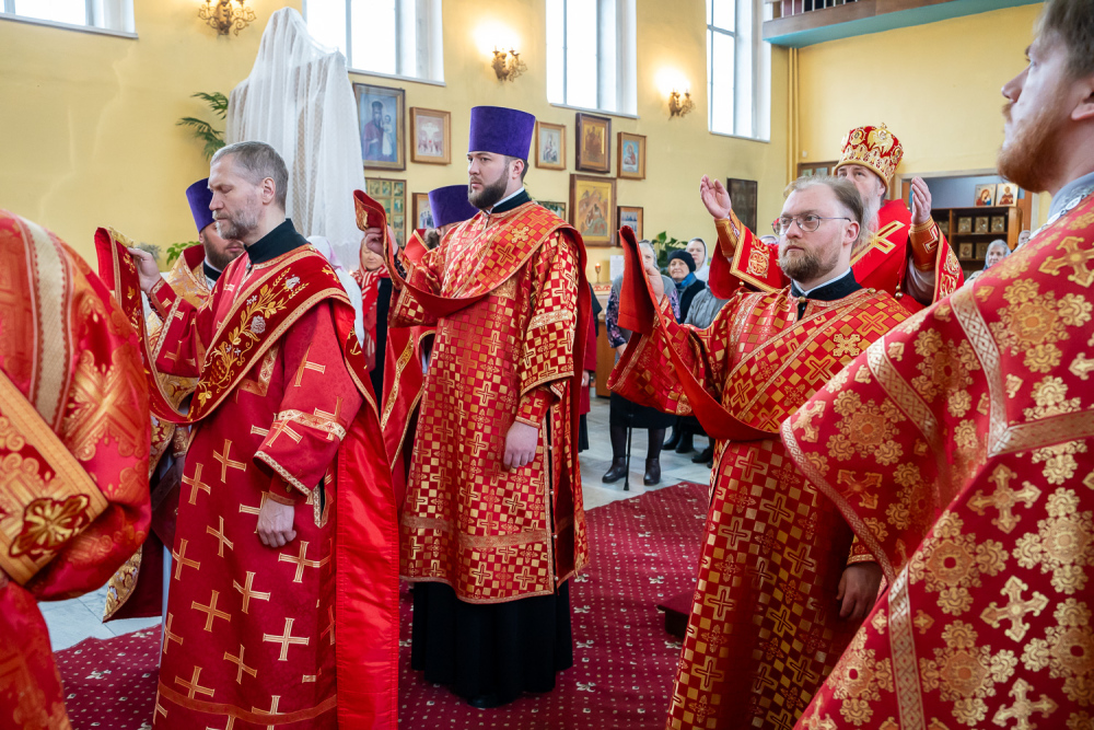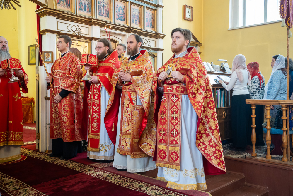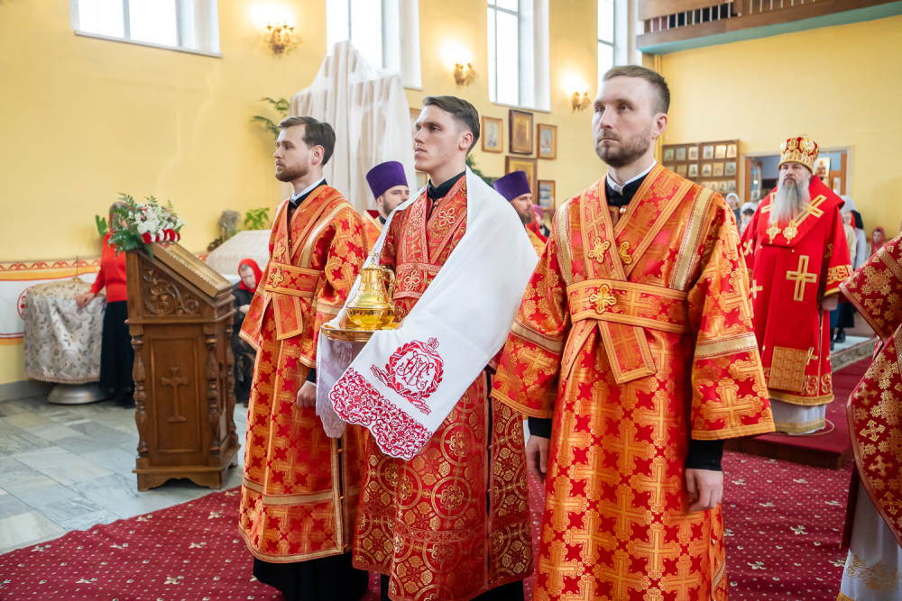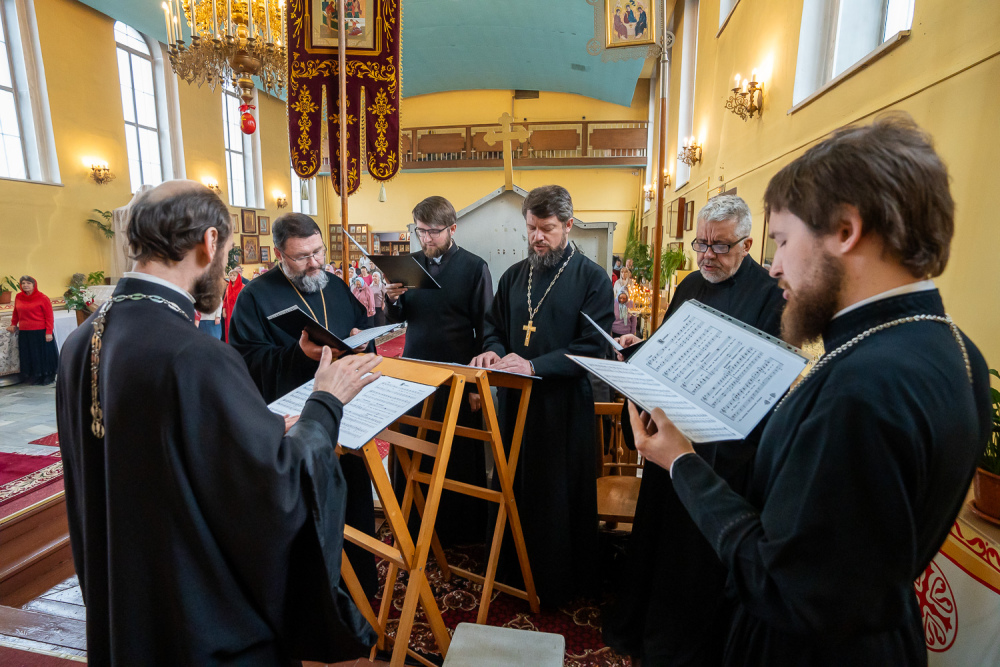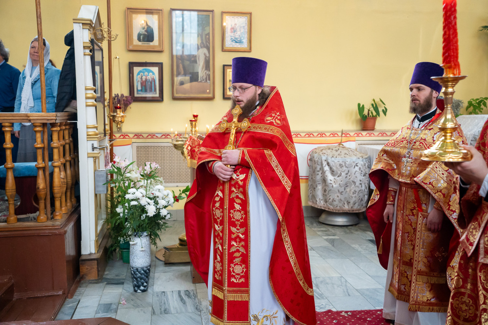 Его Высокопреосвященству сослужили благочинный Никольского городского округа, настоятель Воскресенского храма иерей Виктор Сторожев, протоиерей Владимир Кувшинов, иереи Виталий Зорин, Георгий Насонов и Олег Кулик, диаконы Богдан Яворский, Кирилл Вейго и Александр Былинин.