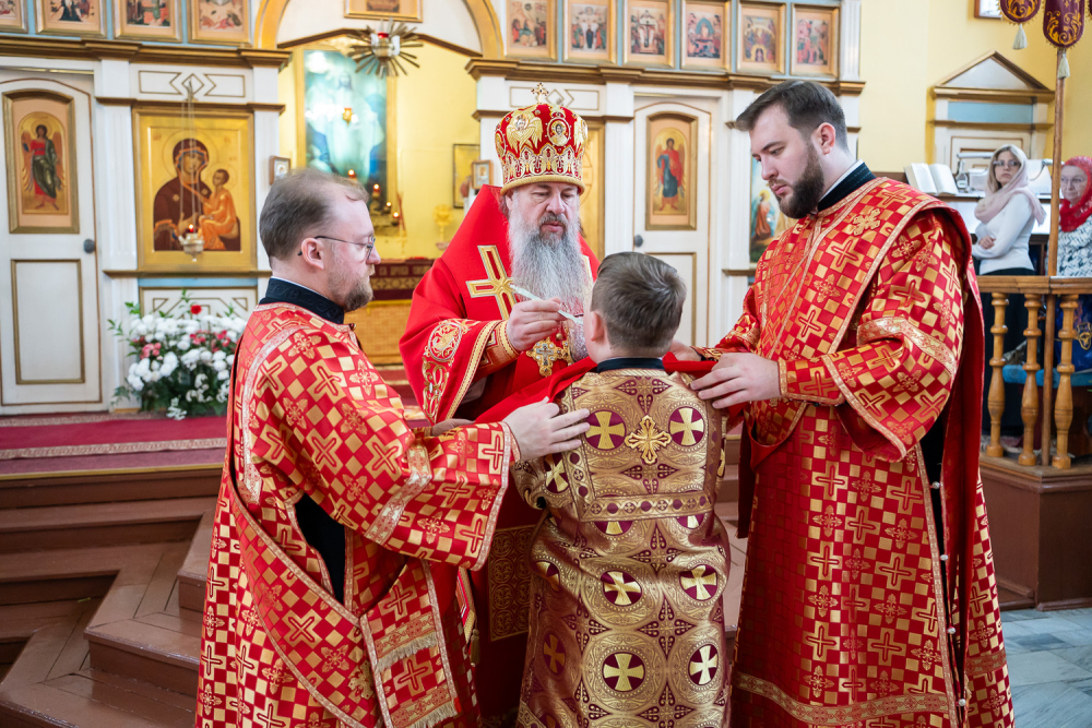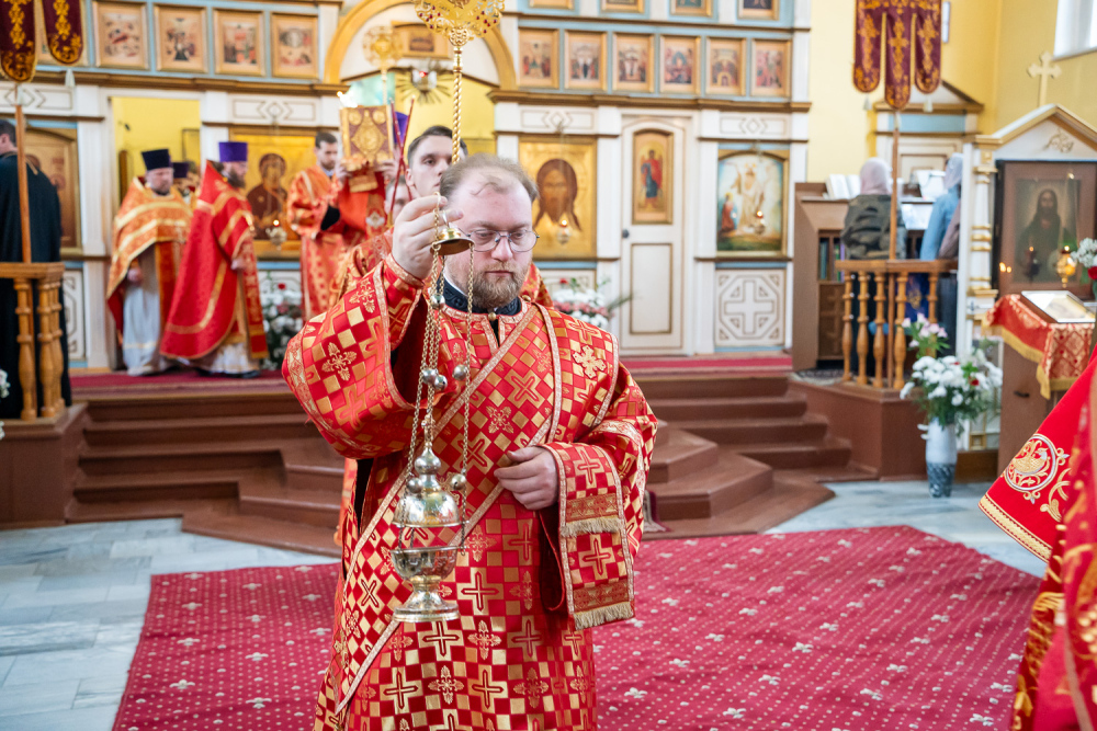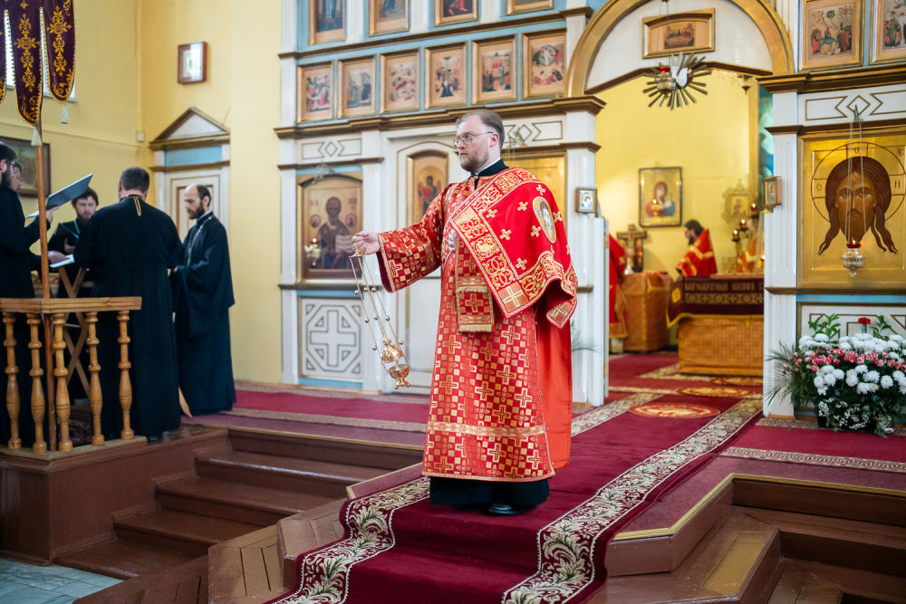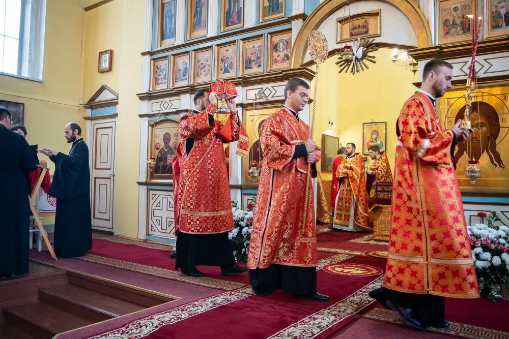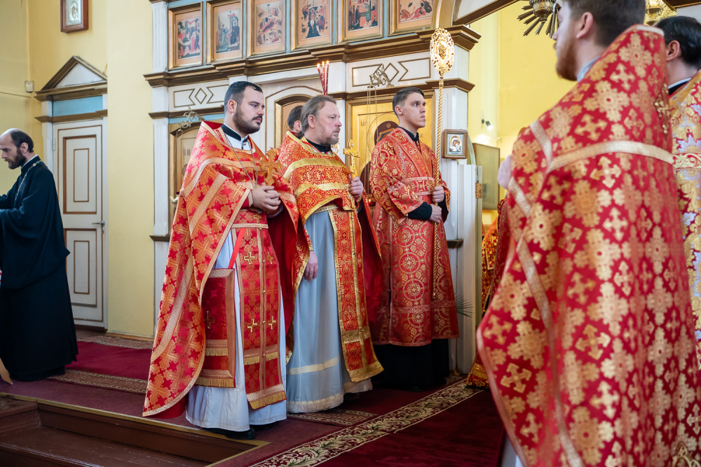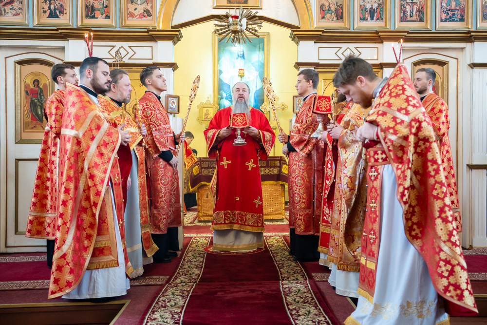 Его Высокопреосвященству сослужили благочинный Никольского городского округа, настоятель Воскресенского храма иерей Виктор Сторожев, протоиерей Владимир Кувшинов, иереи Виталий Зорин, Георгий Насонов и Олег Кулик, диаконы Богдан Яворский, Кирилл Вейго и Александр Былинин.