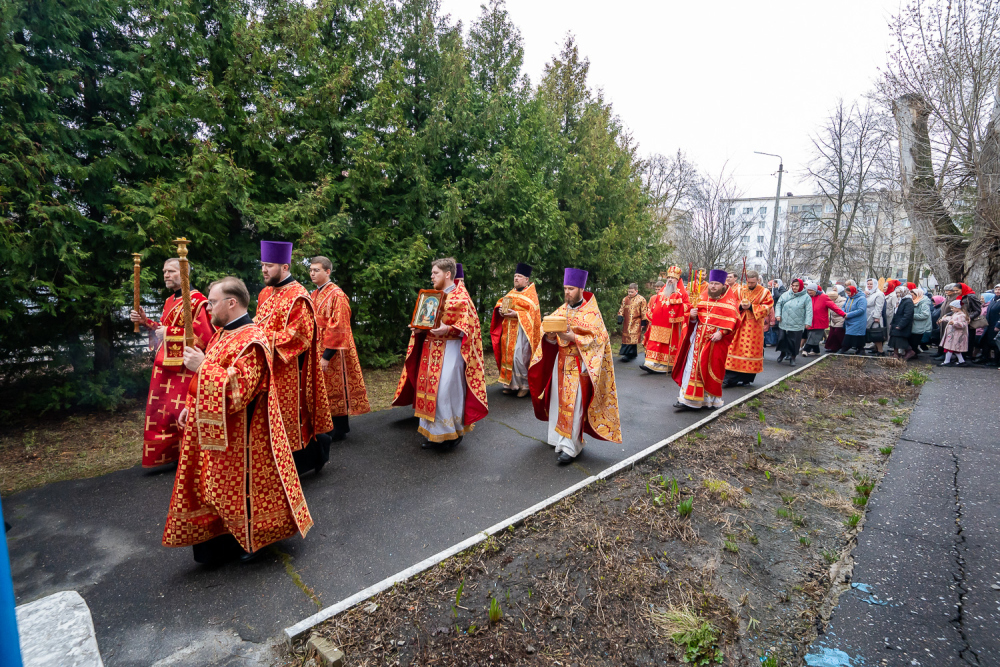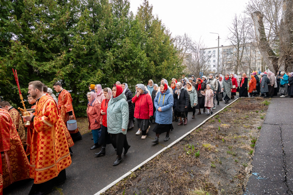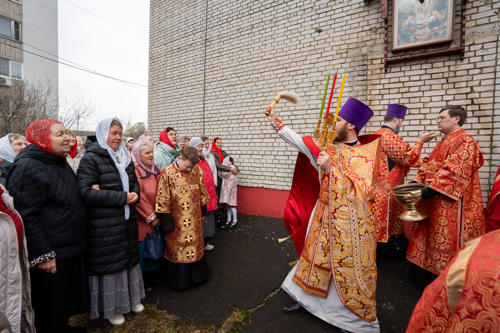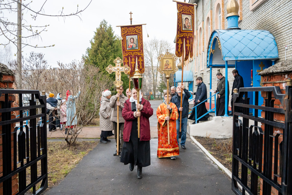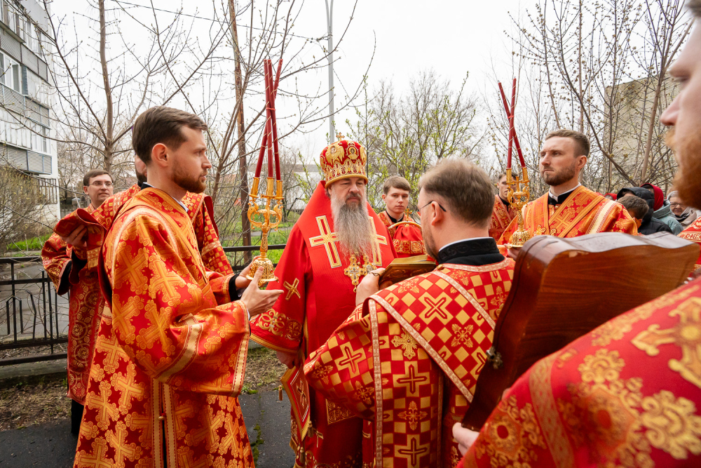 По заамвонной молитве митрополит Серафим возглавил пасхальный крестный ход вокруг храма.