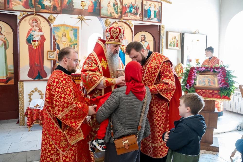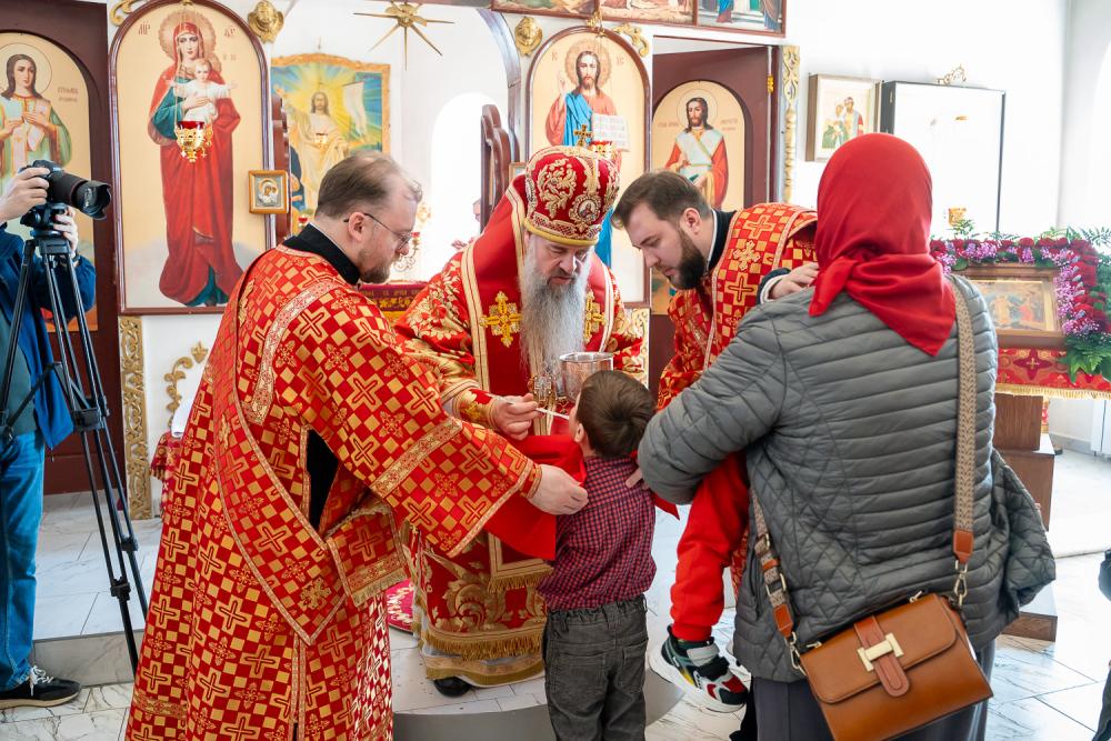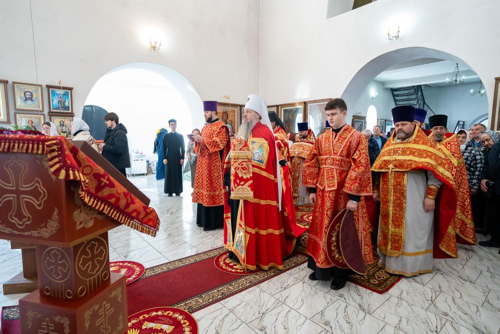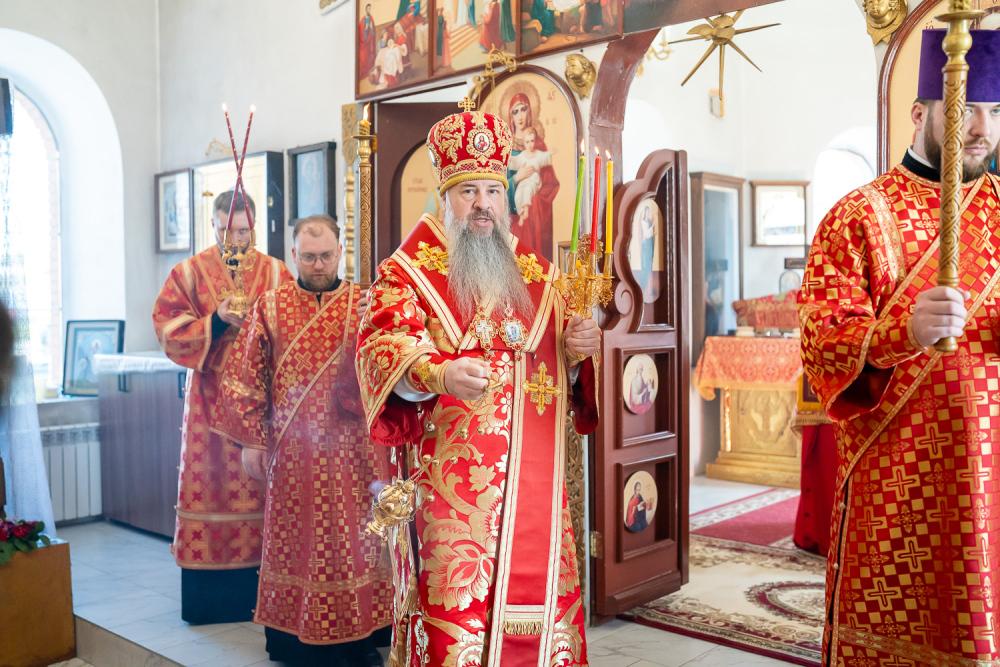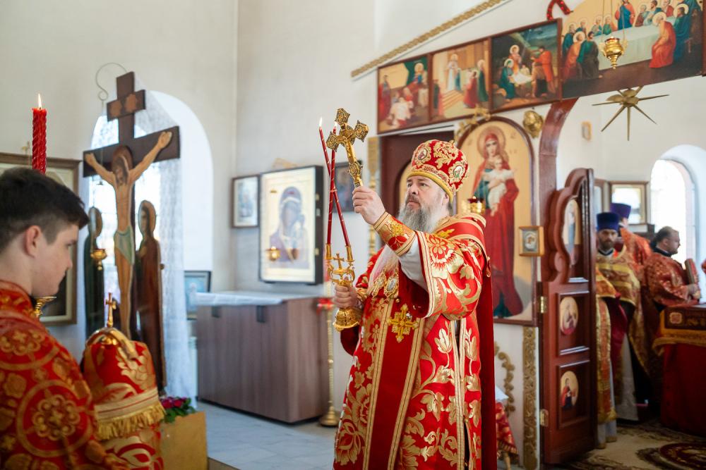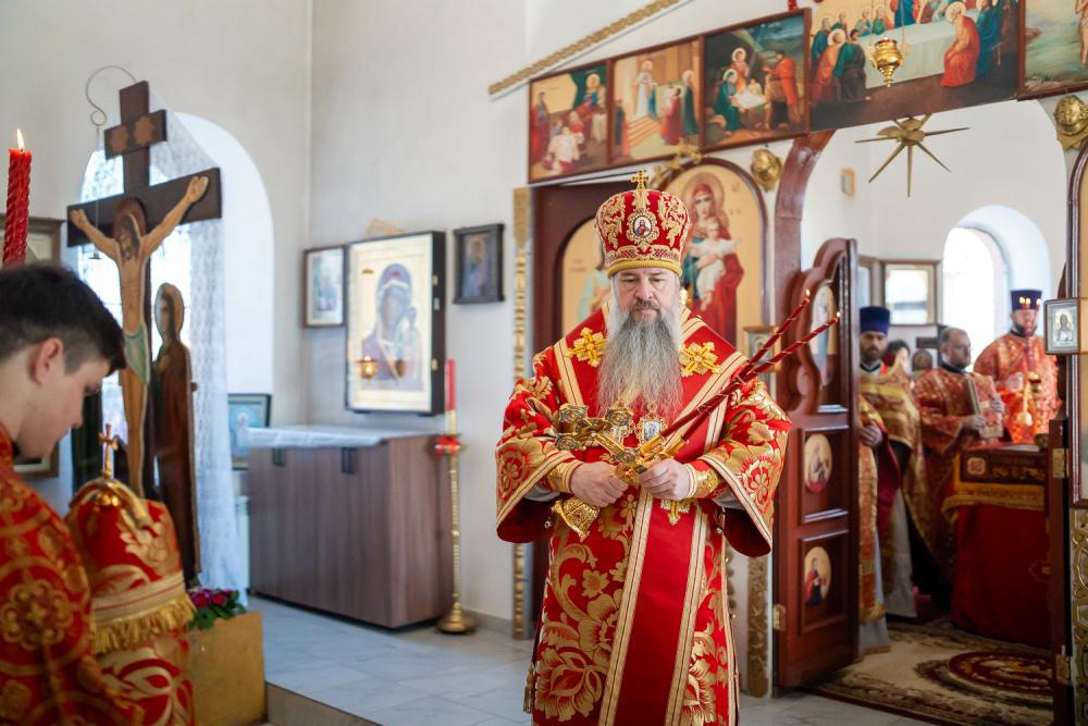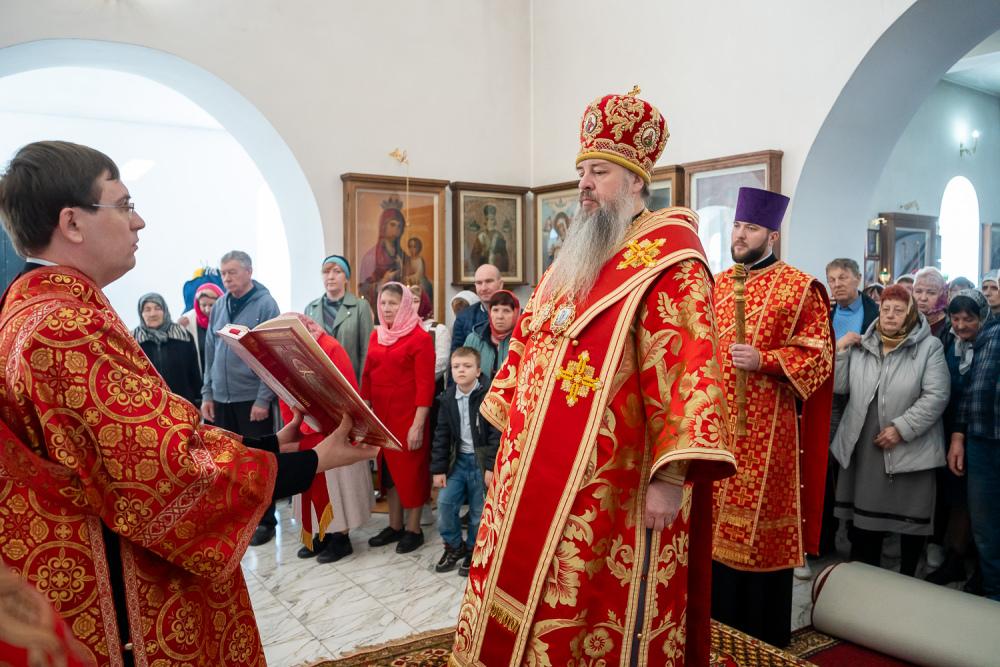 В четверг Светлой седмицы митрополит Серафим совершил литургию в Никольском храме рабочего поселка Шемышейка