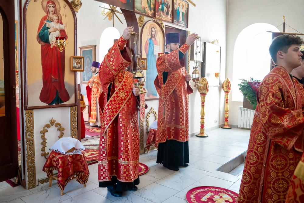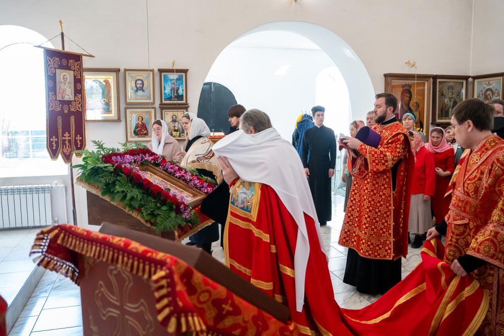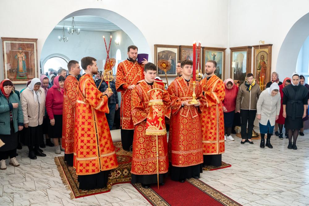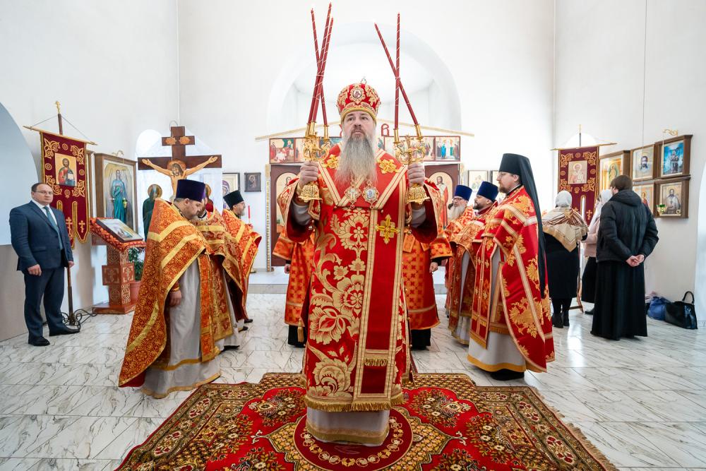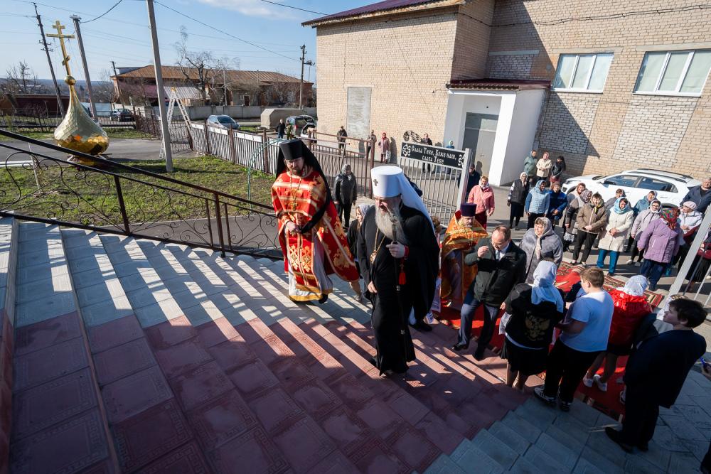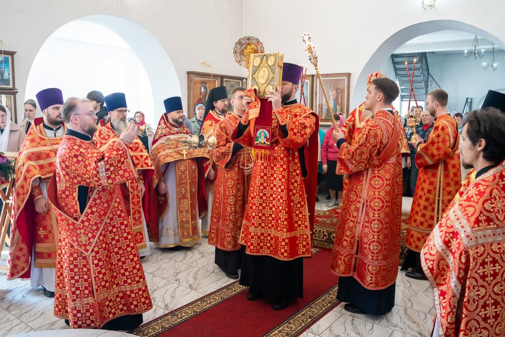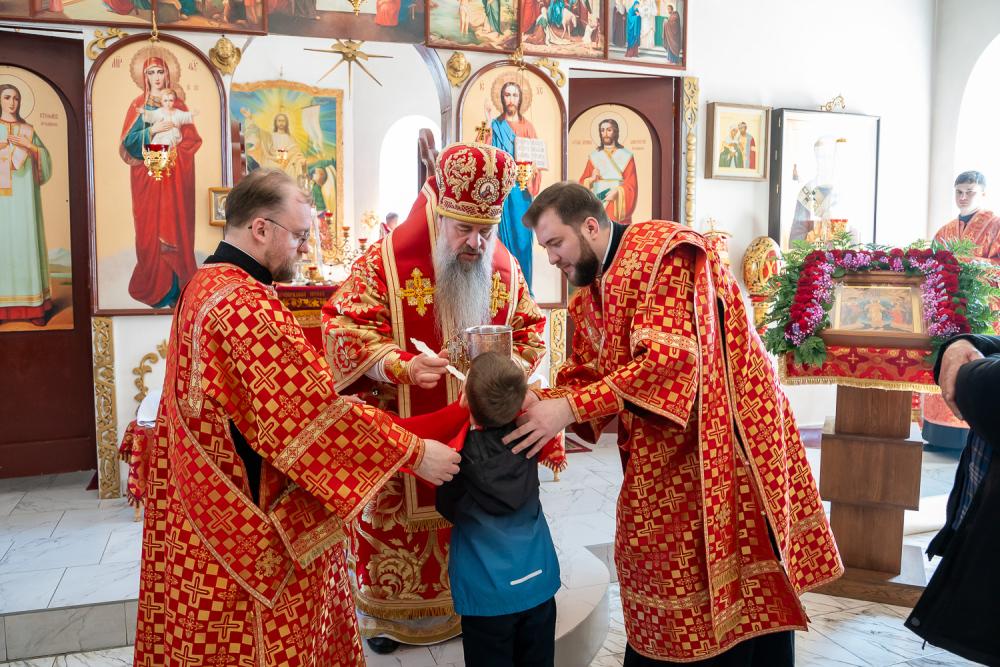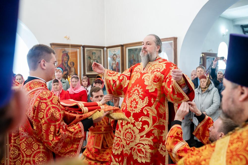 В четверг Светлой седмицы митрополит Серафим совершил литургию в Никольском храме рабочего поселка Шемышейка
