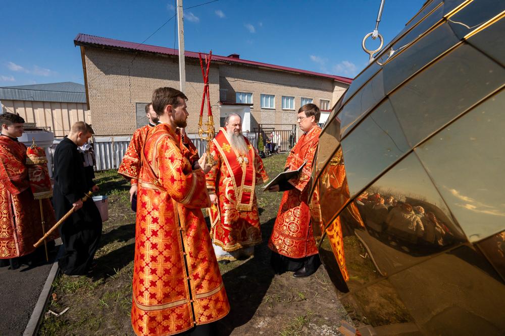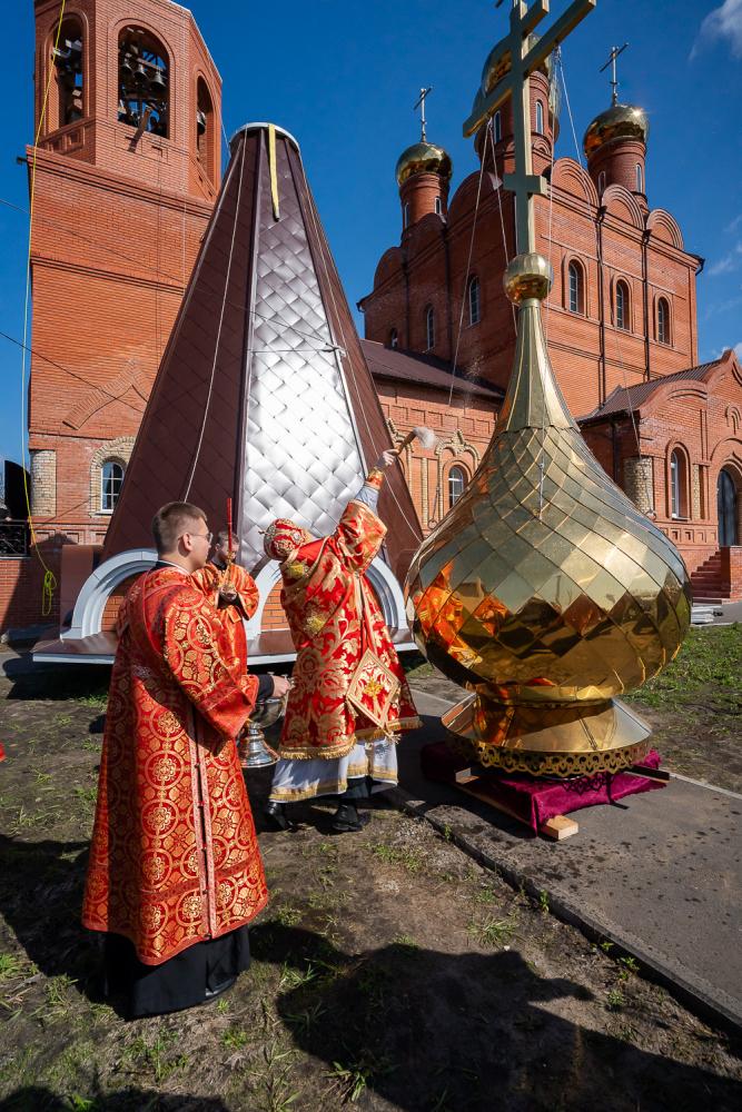 По окончании богослужения глава Шемышейского района Александр Иванович Власкин обратился к владыке Серафиму: «Мы много в прошлом году работали для того, чтобы благоустроить территорию нашего храма. На нашей звоннице появились колокола весом более полутора тонн — они сейчас звучат над нашим храмом и славят Воскресшего Господа. И сегодня радостный день для Никольского прихода — мы освящаем купол над нашей колокольней.