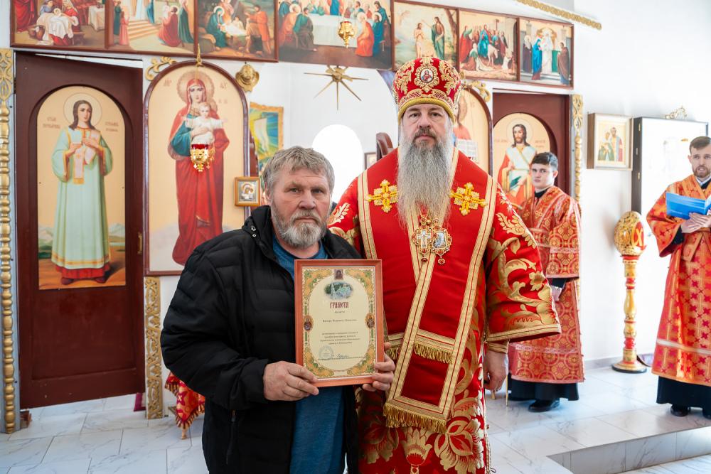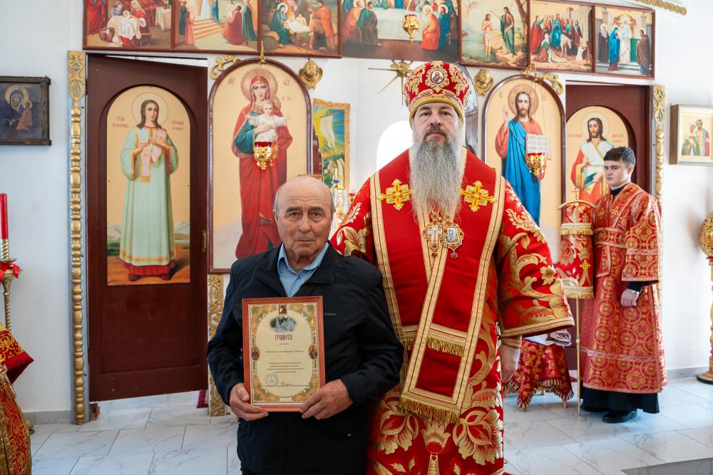 За зимний период, благодаря помощи наших благодетелей и под руководством настоятеля храма отца Александра, мы практически завершили внутренние работы. Но планы у нас большие — готова статуя святителя и чудотворца Николая, которая будет украшать территорию нашего прихода, подготовлен проект нового иконостаса. Надеюсь, что в следующем году праздник Троицы мы встретим уже с новым иконостасом. Прошу Вашего благословения, дорогой Владыка, на реализацию этих планов».