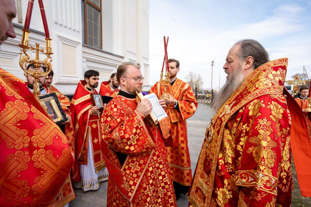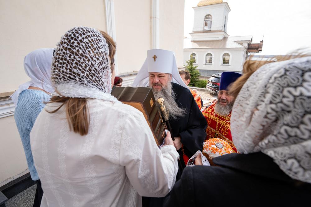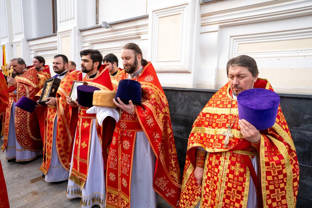 По отпусте литургии митрополит Серафим возглавил крестный ход вокруг храма, после чего было совершено славление перед иконой Божией Матери «Живоносный Источник» и провозглашено многолетие.