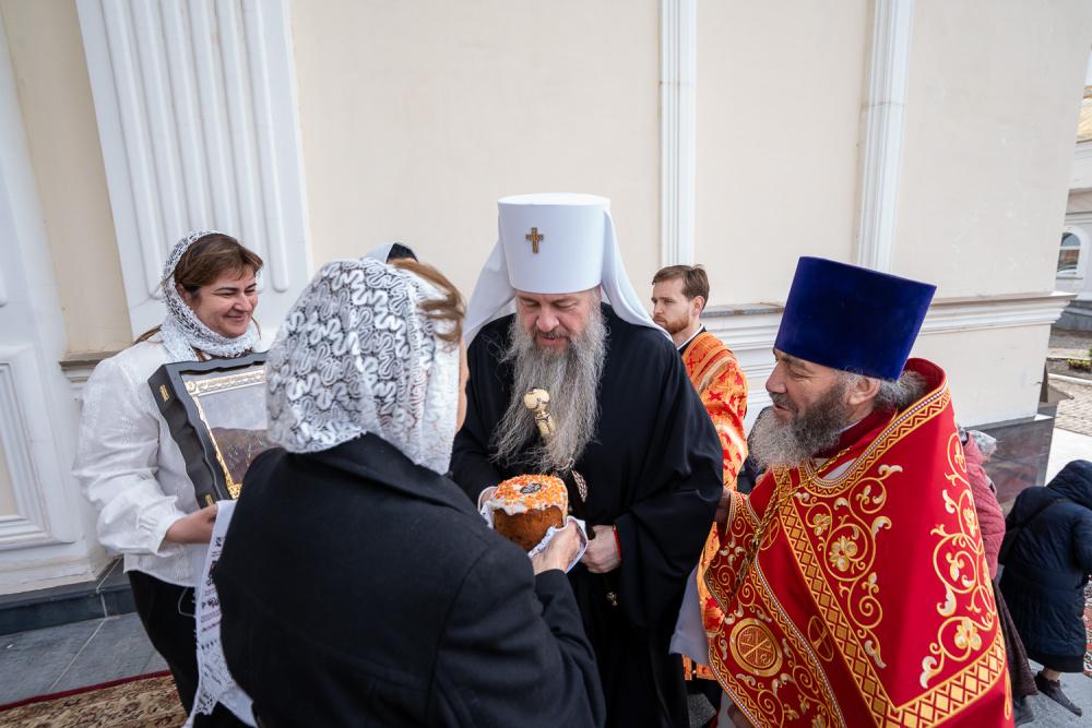 Конечно, мы должны воздавать благодарение Богу за то, что являемся людьми православными, людьми верующими. Но само по себе это еще не дает нам возможности быть спасенными. Как говорит апостол Иаков: «Вера без дел мертва есть» (Иак. 2:26). И нам нужно делом доказывать свою веру, подтверждать ее. Вера побуждает человека к тому, чтобы жить по закону Божию, а этот закон — есть закон любви и милосердия. В эти пасхальные дни Святая Церковь неоднократно нас обращает к образу Богородицы — милостивой, милосердной и любящей Матери. И нам с вами следует подражать Ее образу. Поздравляю всех вас с праздником! Христос Воскресе!»