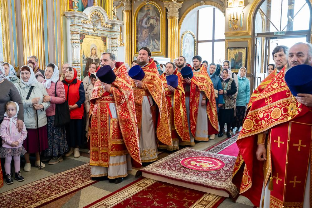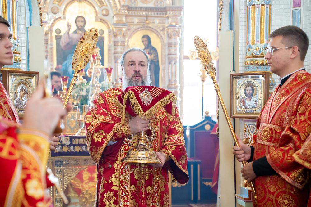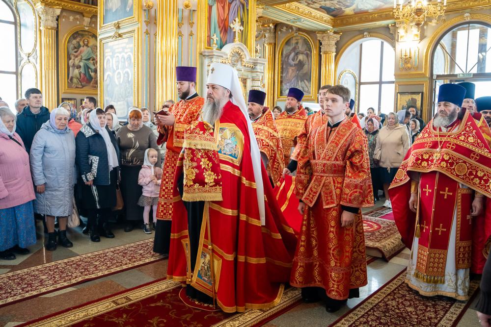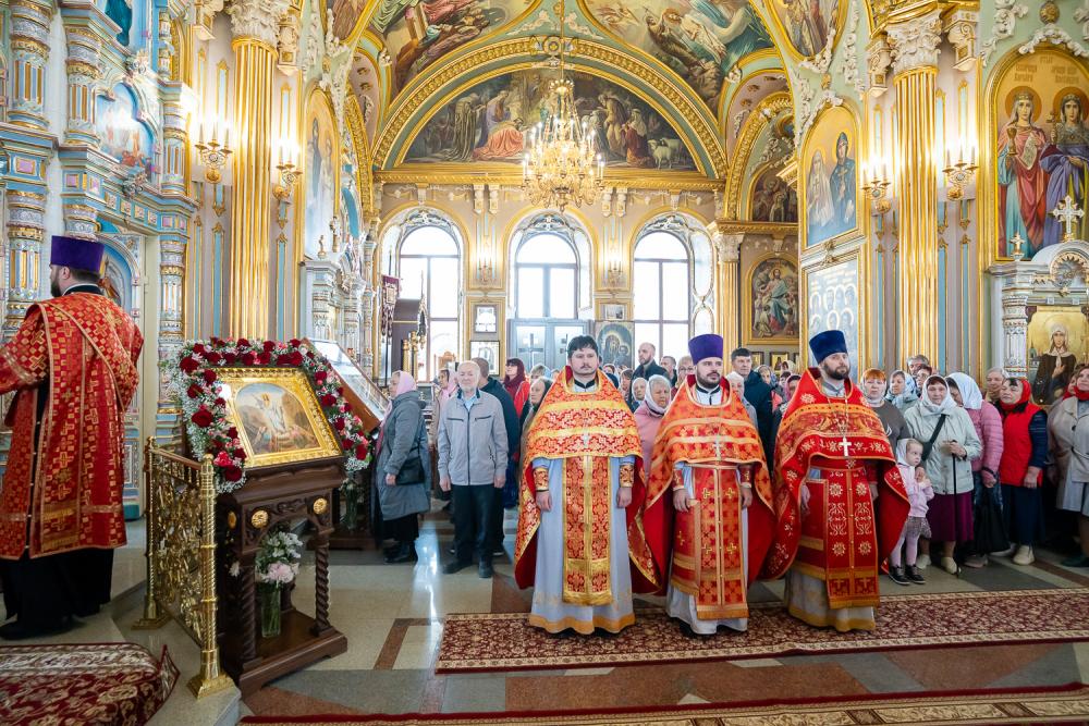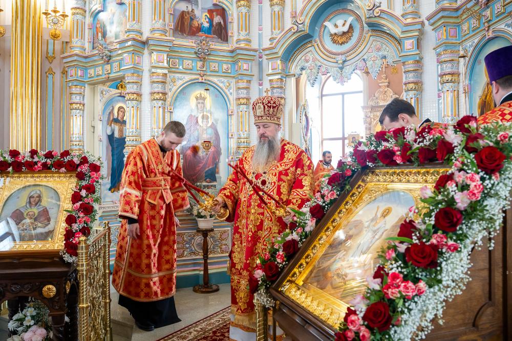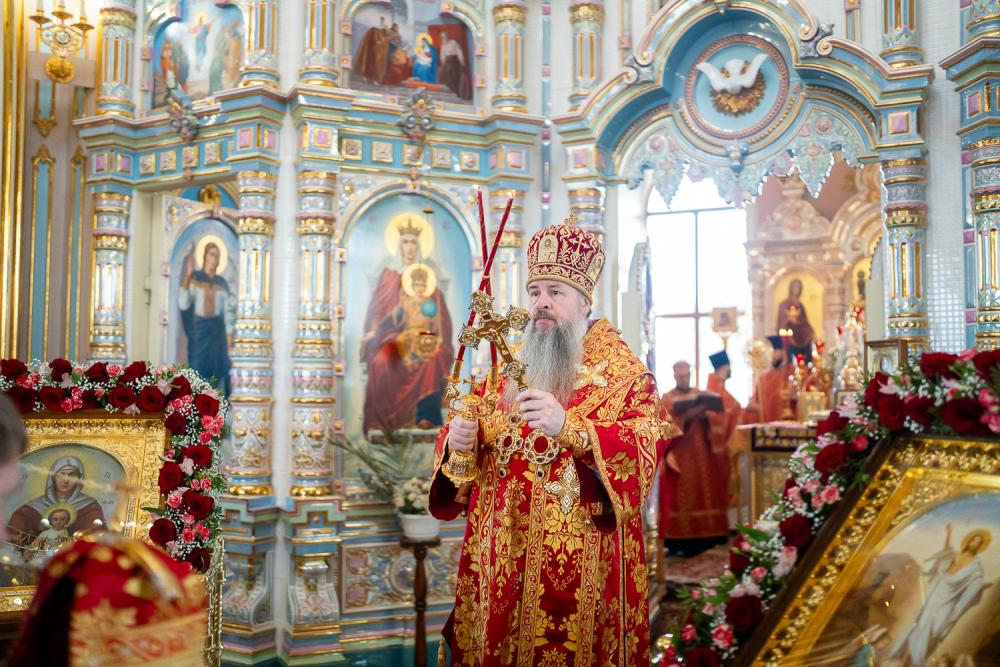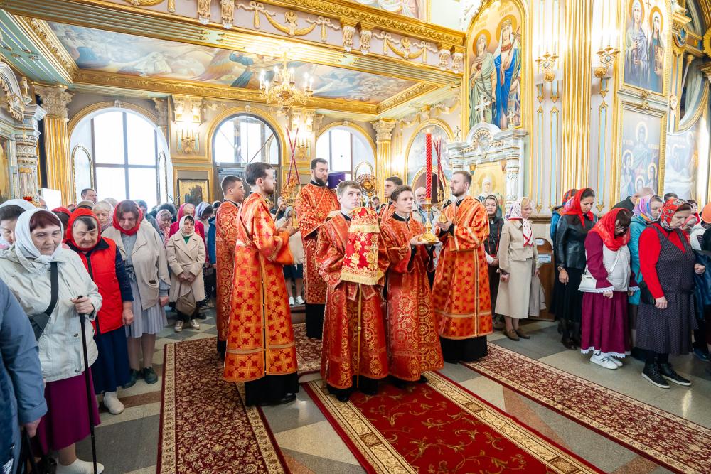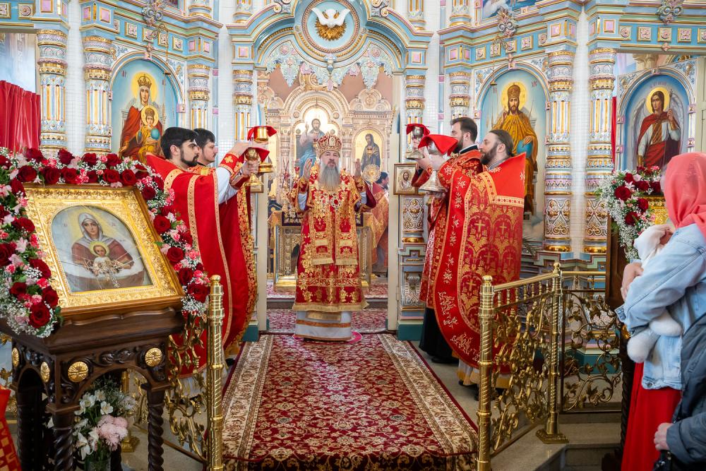 Затем правящий архиерей обратился к участником богослужения: «Сердечно всех вас поздравляю с престольным праздником этого храма — с чествованием иконы Божией Матери, именуемой «Живоносный Источник». Явившаяся некогда в городе Константинополе, в месте, где забил живоносный источник, эта икона сегодня почитается всеми народами, которые исповедуют православное христианство. И не случайно день чествования ее установлен в Светлую седмицу, в пятницу. Что бы ни случилось, мы всегда на Пасху вспоминаем этот образ — «Живоносный Источник».