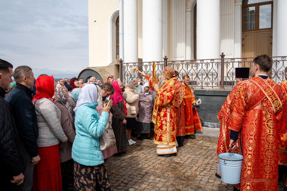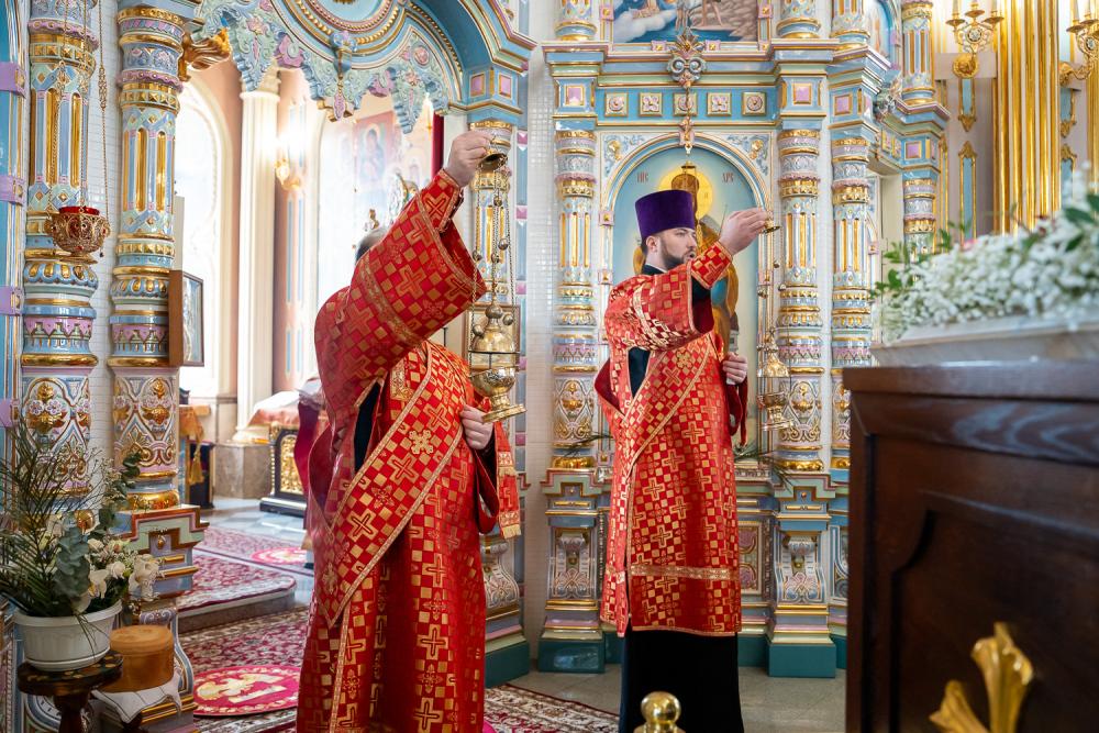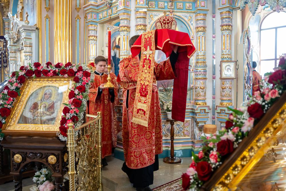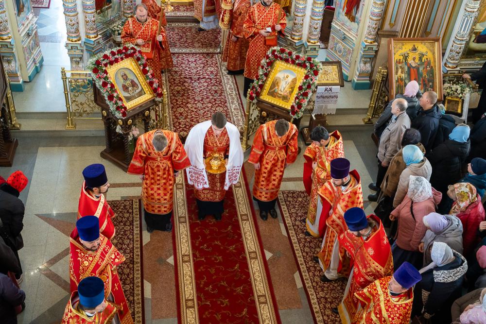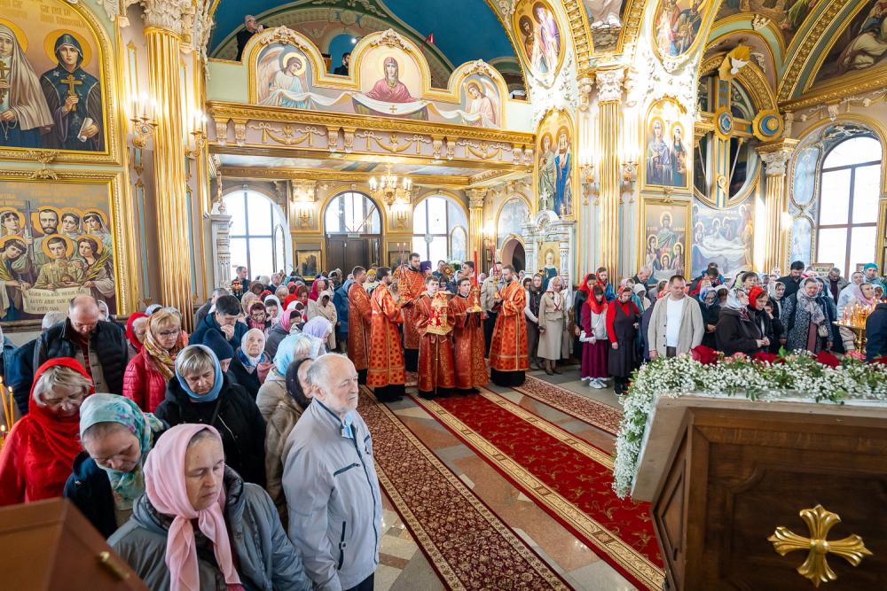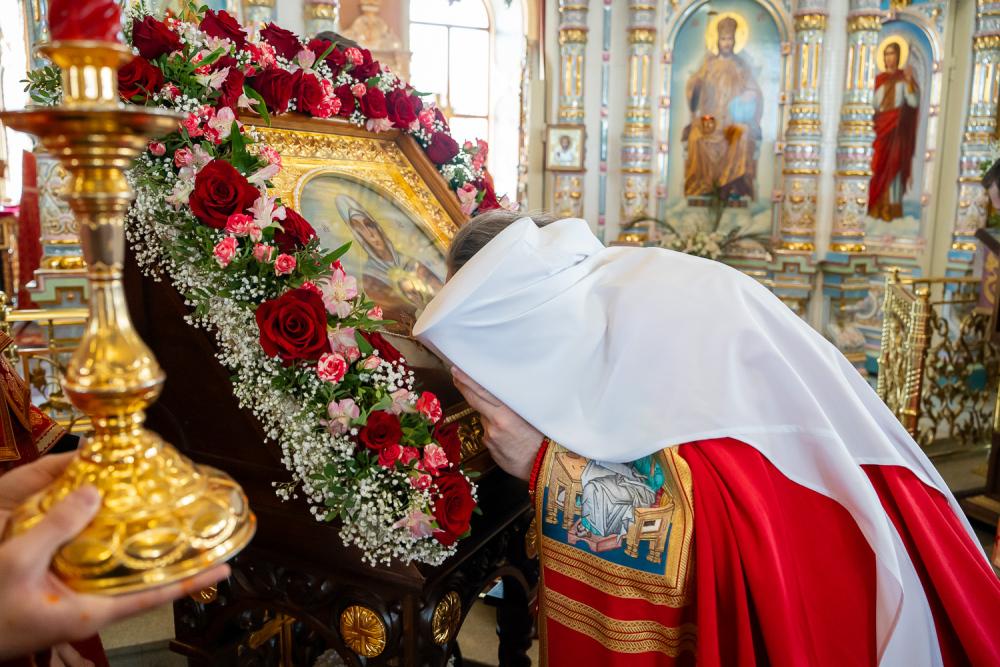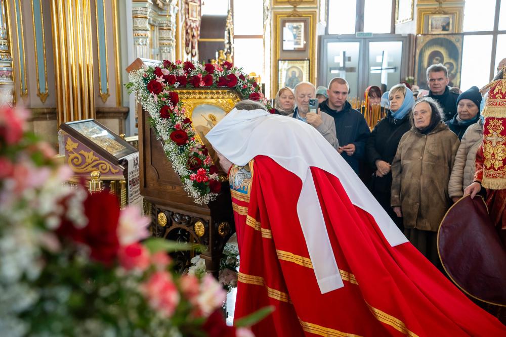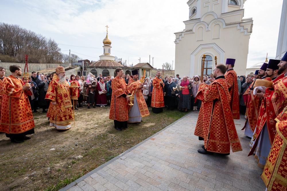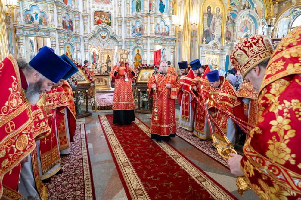 Затем правящий архиерей обратился к участником богослужения: «Сердечно всех вас поздравляю с престольным праздником этого храма — с чествованием иконы Божией Матери, именуемой «Живоносный Источник». Явившаяся некогда в городе Константинополе, в месте, где забил живоносный источник, эта икона сегодня почитается всеми народами, которые исповедуют православное христианство. И не случайно день чествования ее установлен в Светлую седмицу, в пятницу. Что бы ни случилось, мы всегда на Пасху вспоминаем этот образ — «Живоносный Источник».