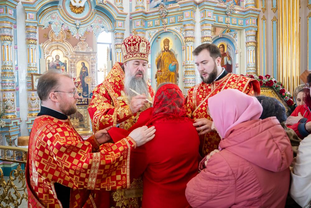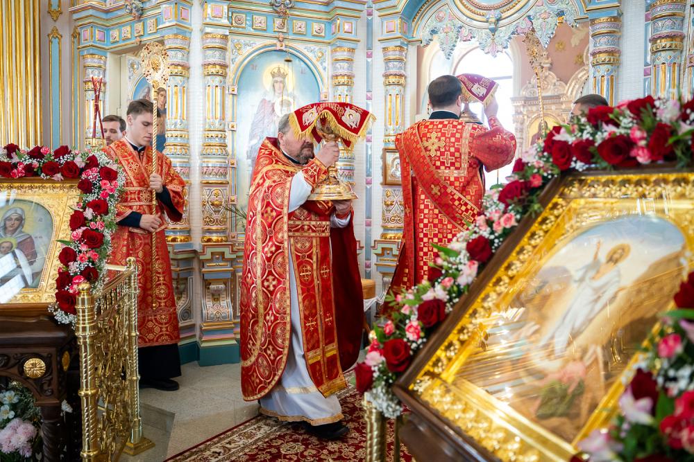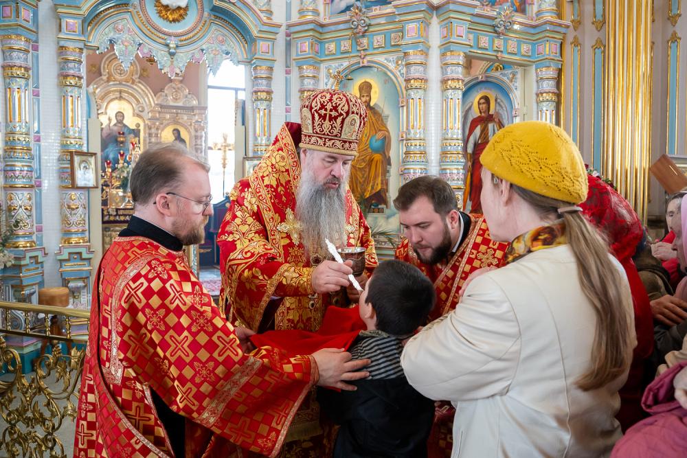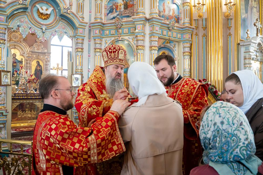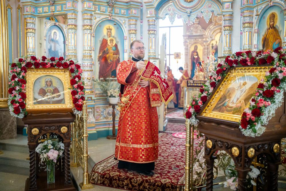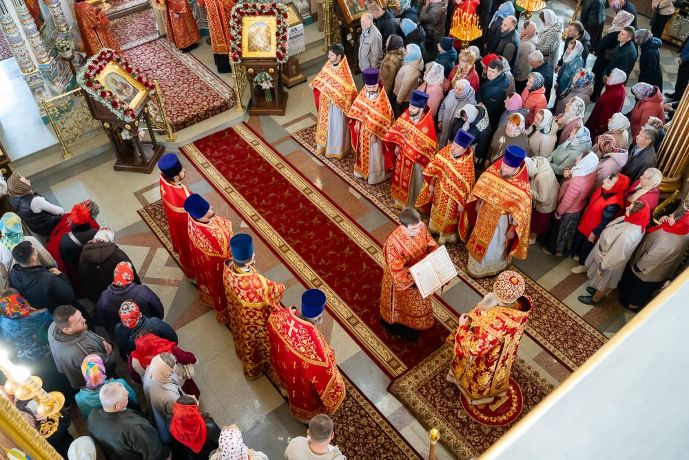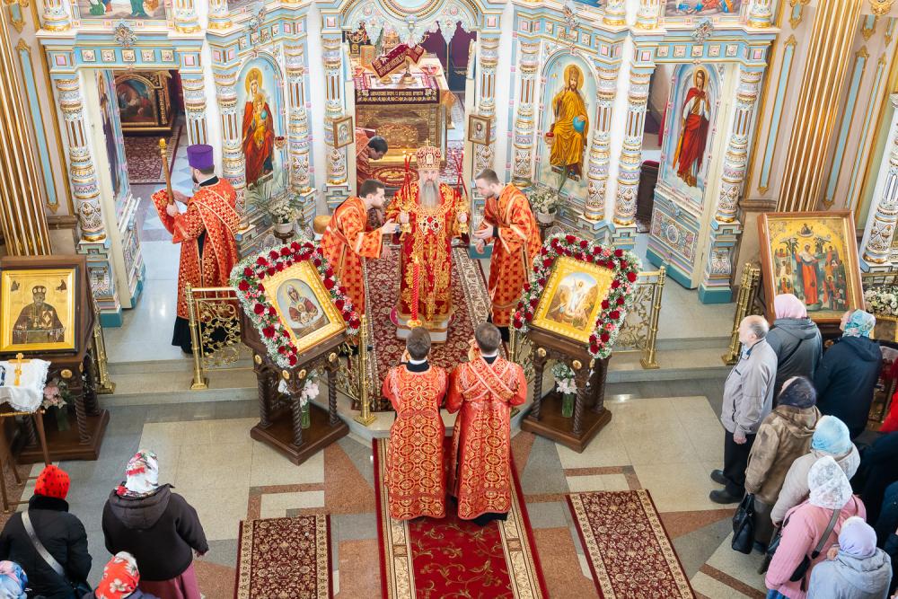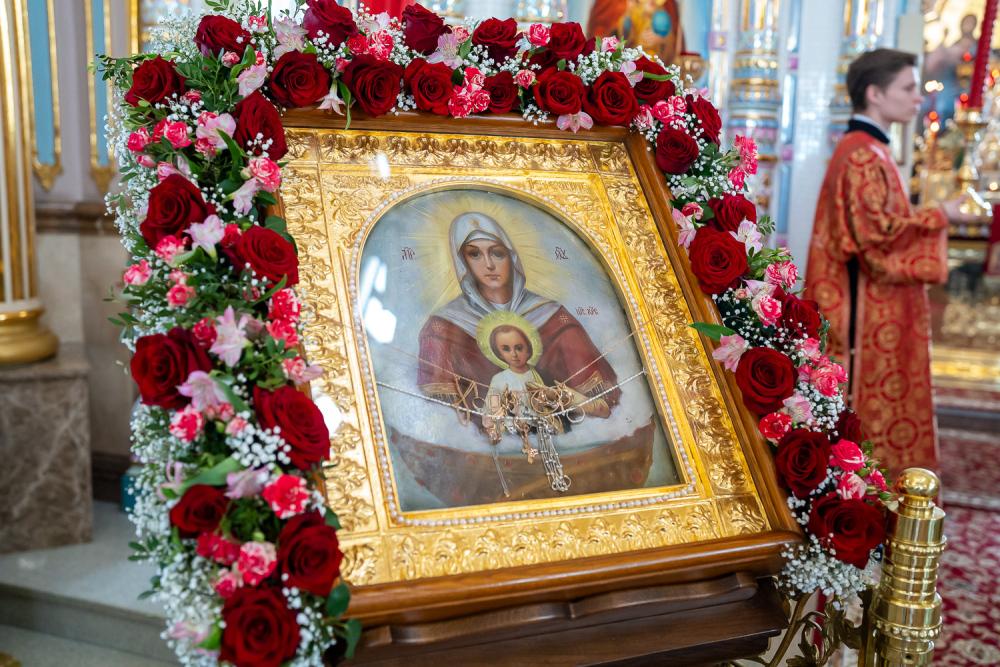 Затем правящий архиерей обратился к участником богослужения: «Сердечно всех вас поздравляю с престольным праздником этого храма — с чествованием иконы Божией Матери, именуемой «Живоносный Источник». Явившаяся некогда в городе Константинополе, в месте, где забил живоносный источник, эта икона сегодня почитается всеми народами, которые исповедуют православное христианство. И не случайно день чествования ее установлен в Светлую седмицу, в пятницу. Что бы ни случилось, мы всегда на Пасху вспоминаем этот образ — «Живоносный Источник».
