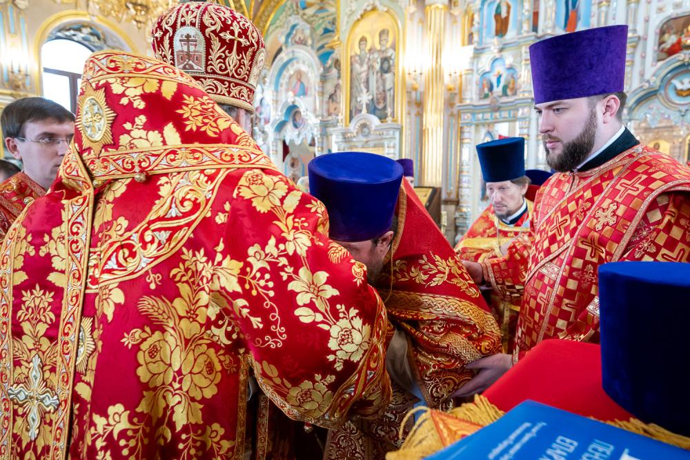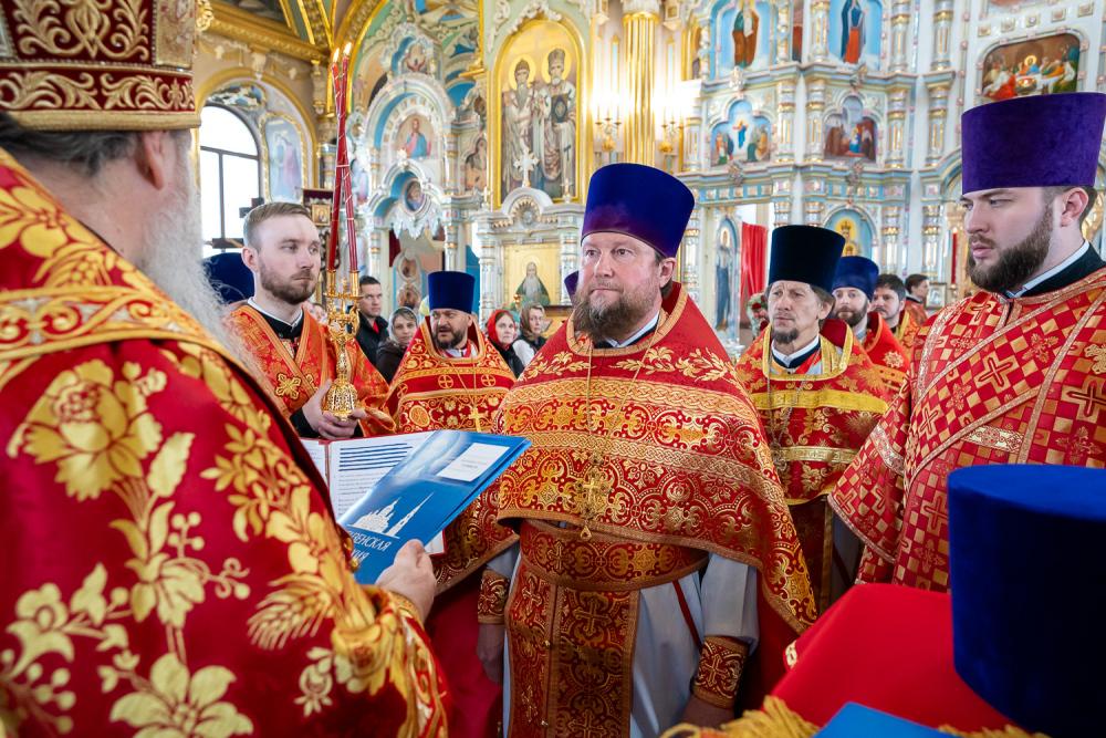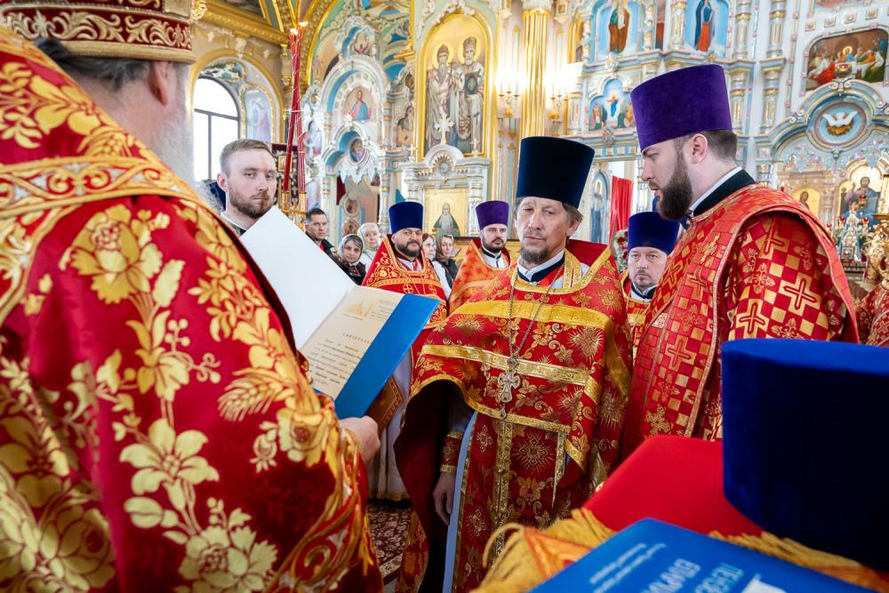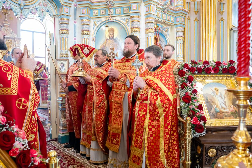 Во время богослужения во внимание к усердным трудам во славу Святой Церкви и ко дню Святой Пасхи по представлению правящего архиерея, Святейшим Патриархом Московским и всея Руси Кириллом ряд клириков Пензенской епархии были удостоены богослужебно-иерархических наград: